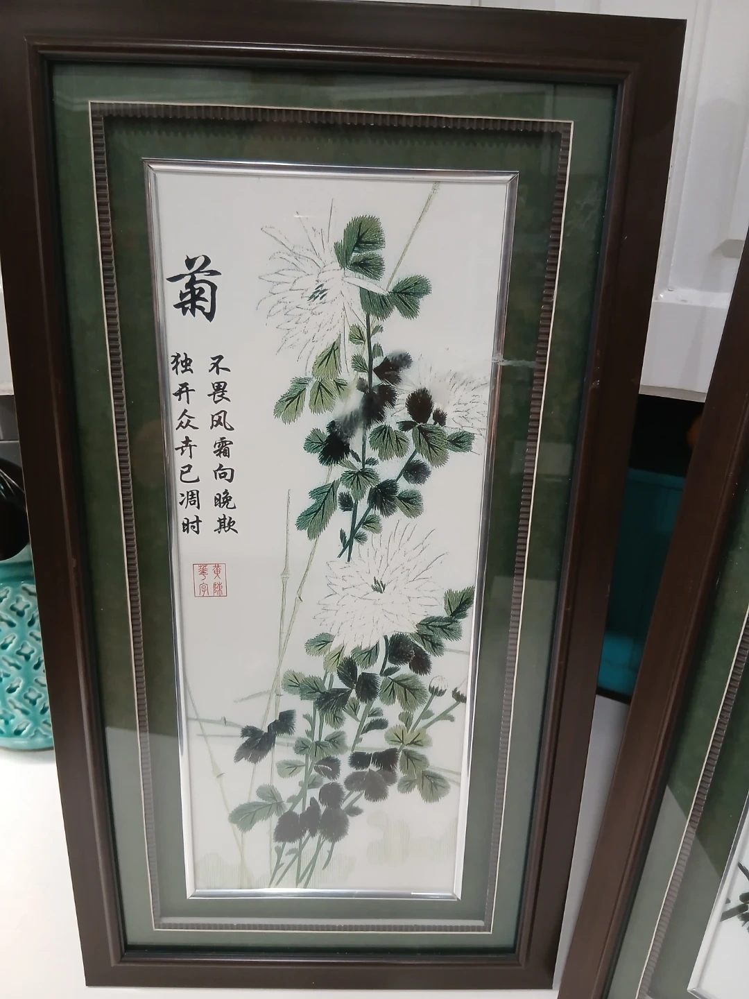 Selling a set of two vintage framed Chinese artworks! They feature delicate botanical designs and would add a touch of elegance to any room, great condition