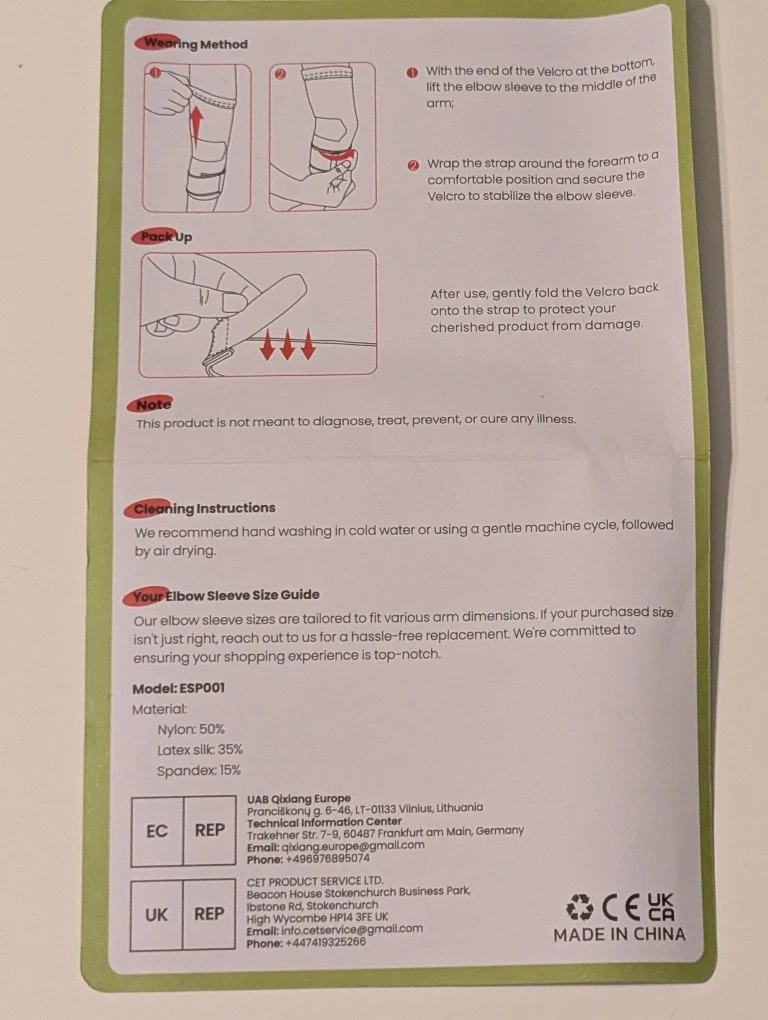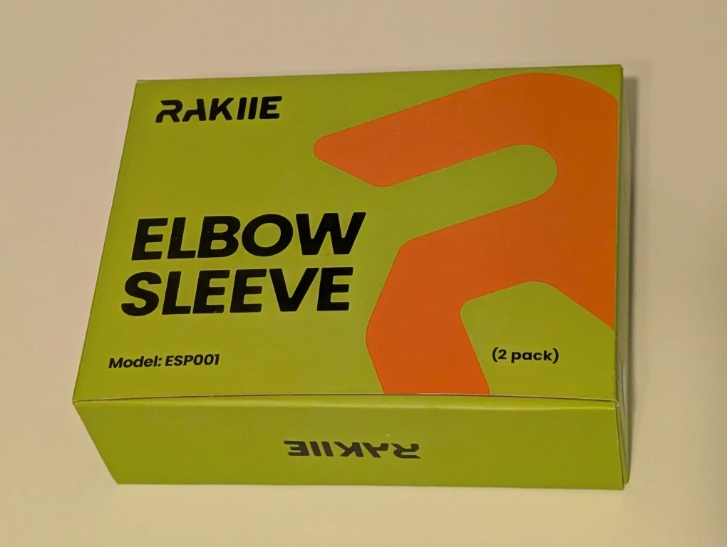 Selling a pair of RAKIIE elbow sleeves, new, in box, with instruction page included.