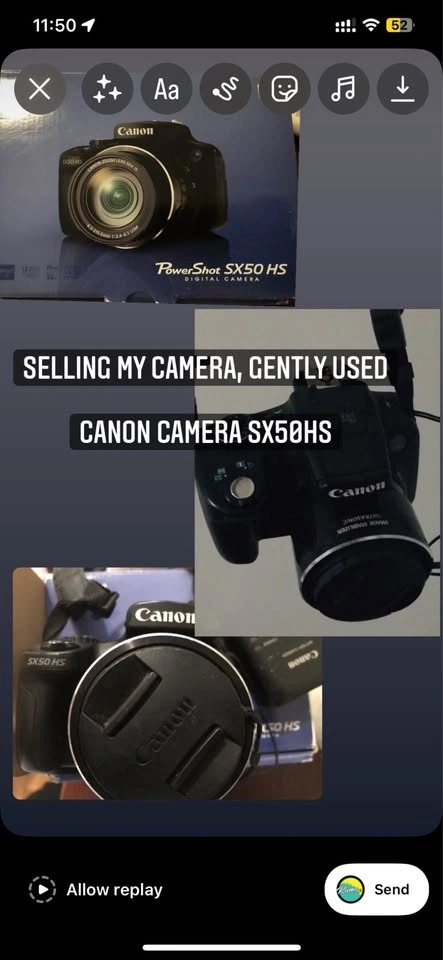 Selling my Canon PowerShot SX50 HS camera in excellent, like-new condition.