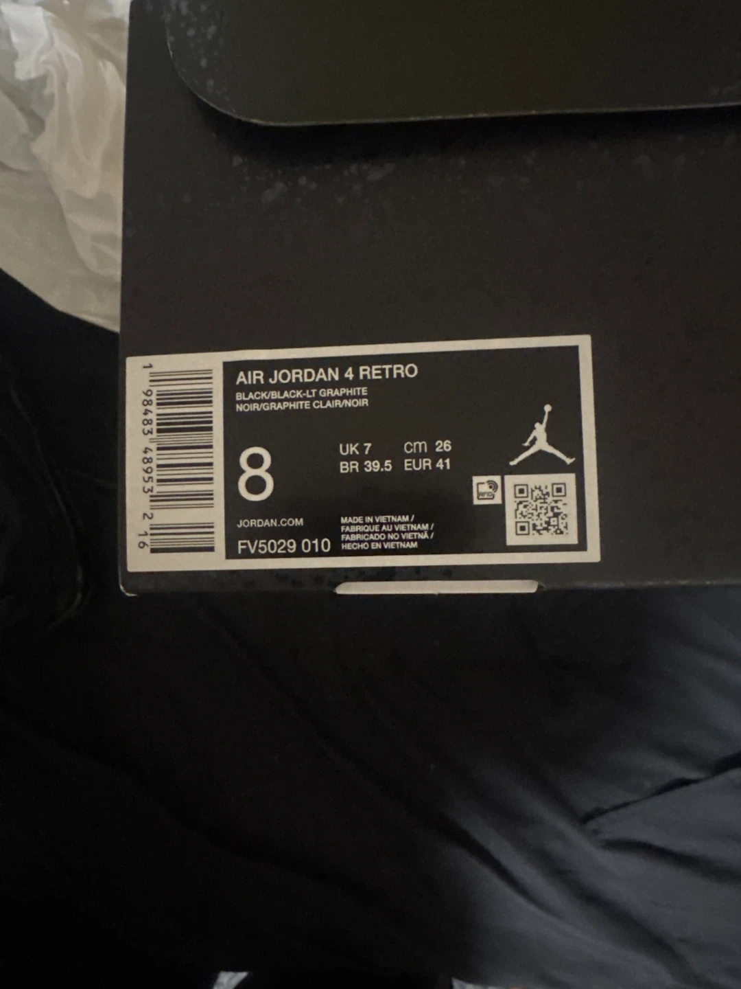 Buy & SellAir Jordan 4 Retro Black Graphite Size 8Air Jordan 4 Retro Black Graphite Size 8$316Selling a pair of Air Jordan 4 Retro in black! These are a size 8. The box is included.Size8BrandAir JordanWHERE TO MEETBus stopView MapSELLERBorisEast Elmhurst100 reviews1 chats·1 favorites·98 viewsSEND CHAT TO SELLERHi Boris! I’m interested in your listing.Hi Boris! I’m interested in your listing.Get the Karrot app to chatSign In to chat