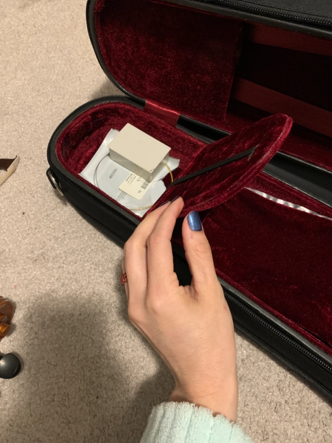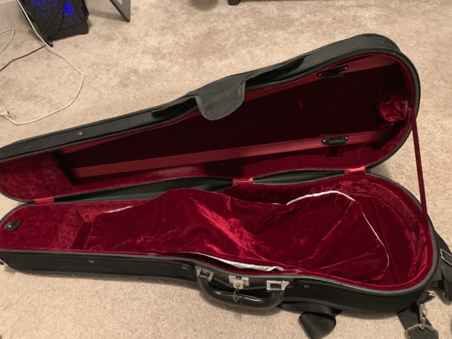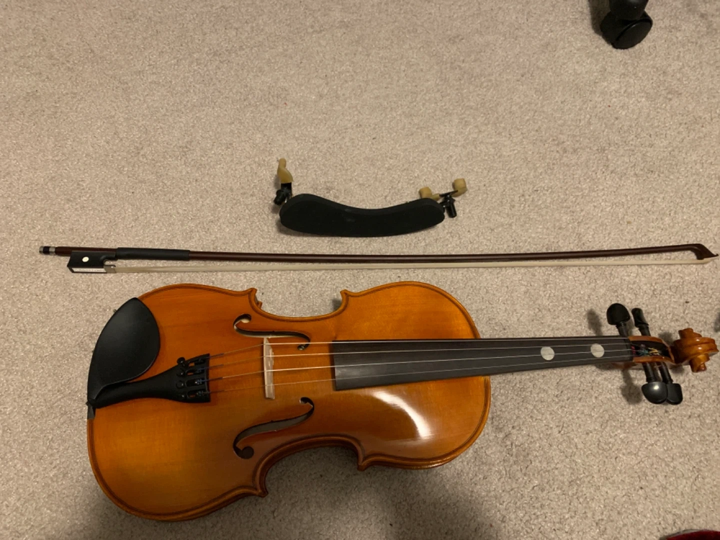 Selling a violin Samuel Eastman size 4/4 year 2014 that comes with its case, bow, and shoulder rest. It's in good condition and ready to play! The case is black with a red velvet interior, providing great protection for the instrument. It might need a couple new strings and tuning but otherwise it’s in perfect shape!