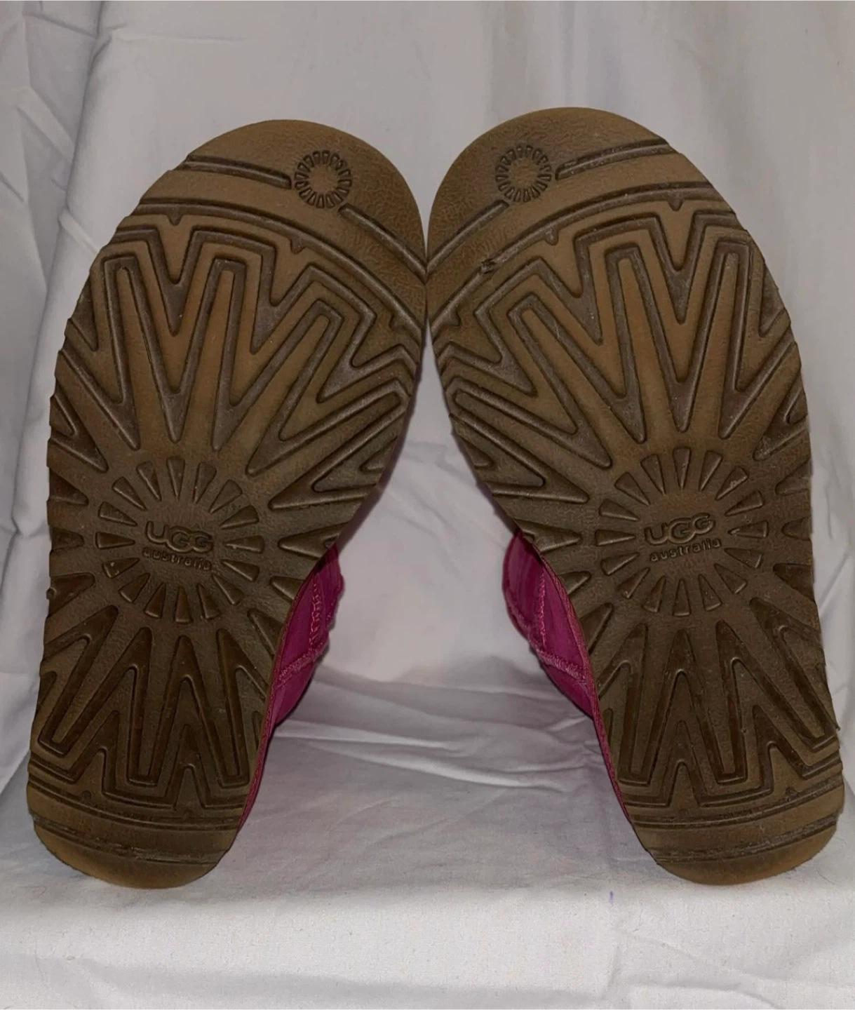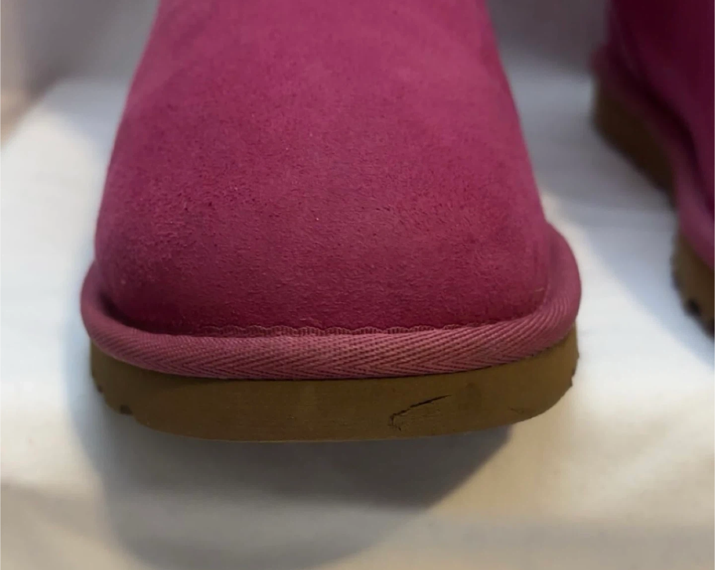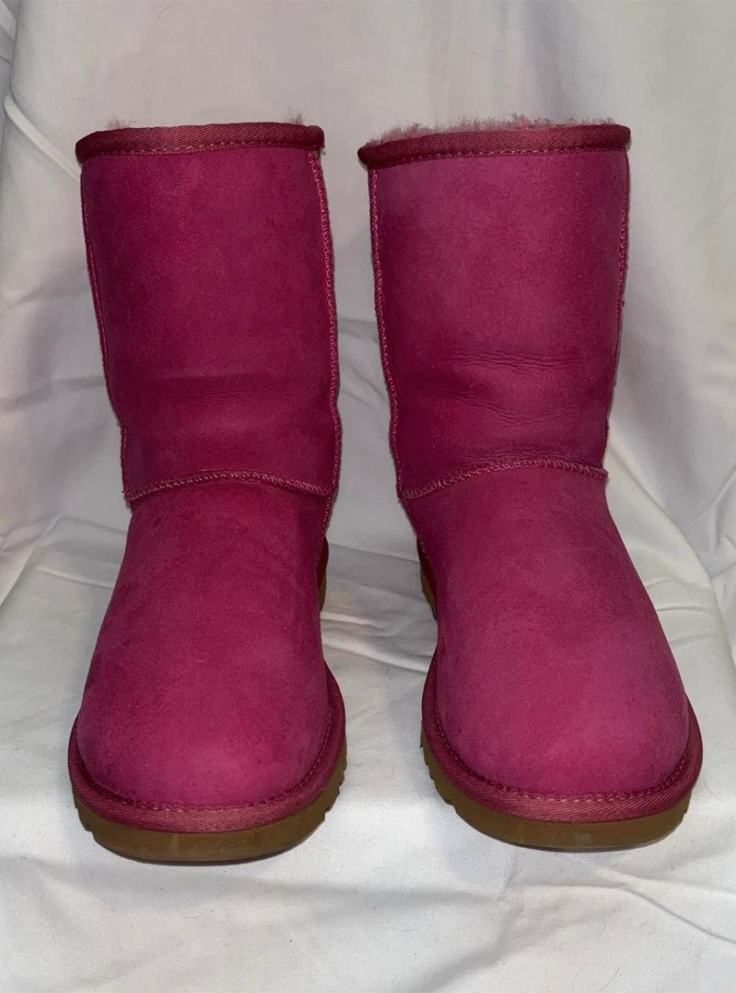 UGG Short Classic Boots - Fuchsia -Size 6 Women’s (I am a size 8). Please note there is a tiny hole at the bottom from a piece of salt and a mark on the front as shown in photo. $50 cash. Porch pick up Kennedy and eglinton