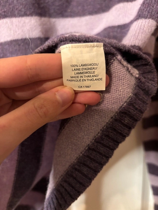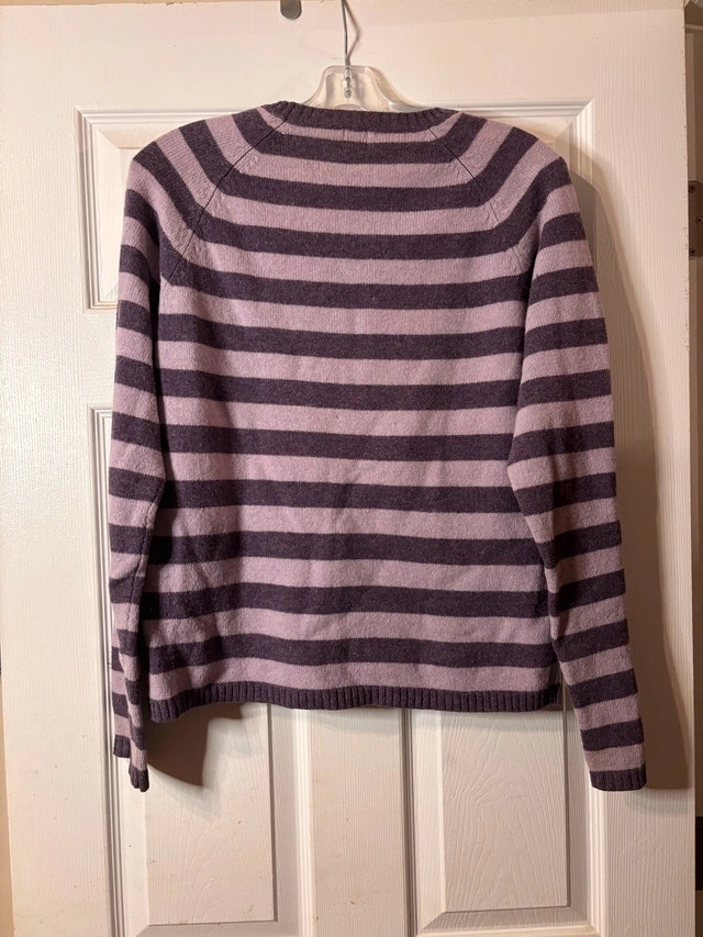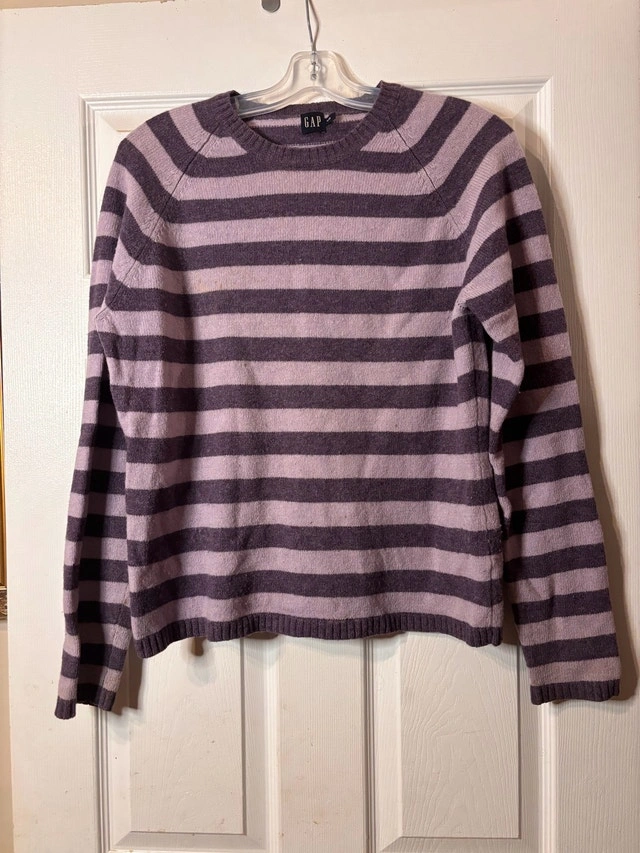 $40 or best offer - Cozy and classic GAP lambswool sweater with matching scarf, made from 100% lambswool. Soft, warm, and breathable with a timeless striped design in muted purple tones. Perfect for fall and winter layering.