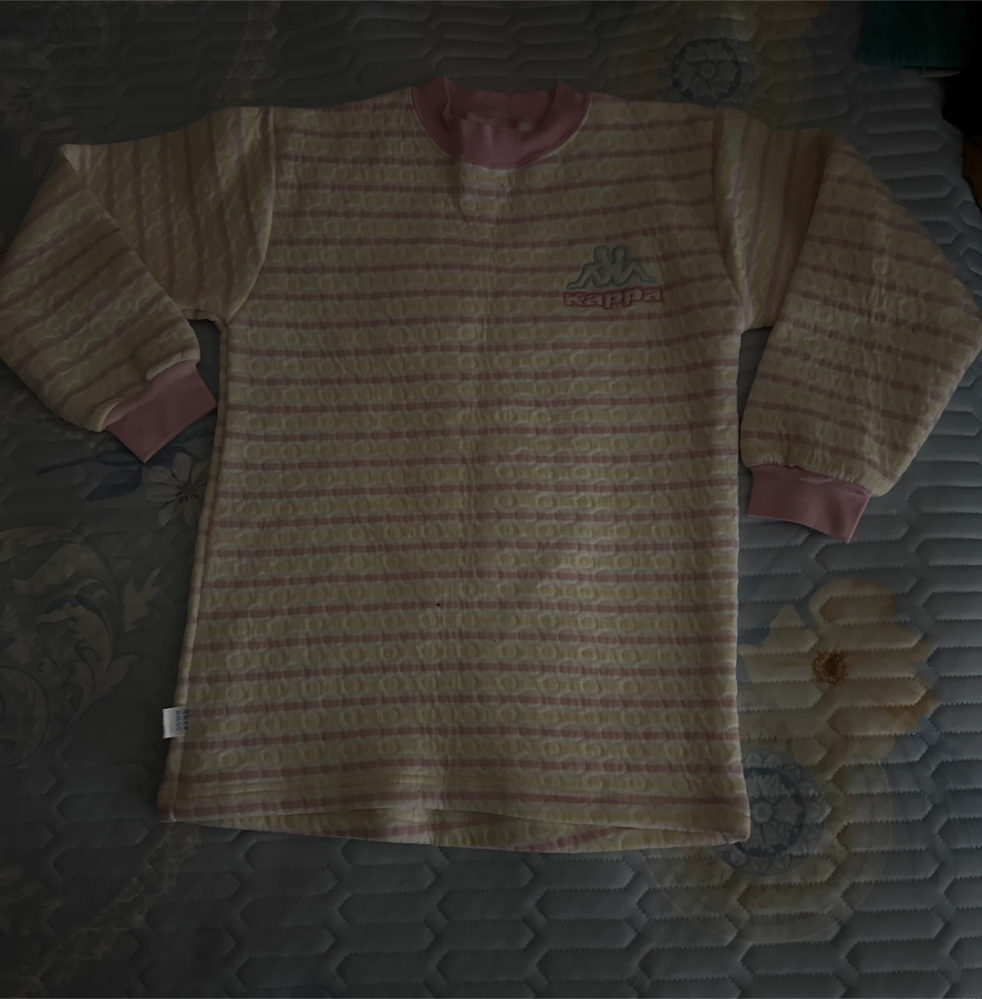 This is a Kappa long sleeve pajama top featuring a striped pattern in cream and pink. It has a comfortable fit and the classic Kappa logo on the chest. #gifting