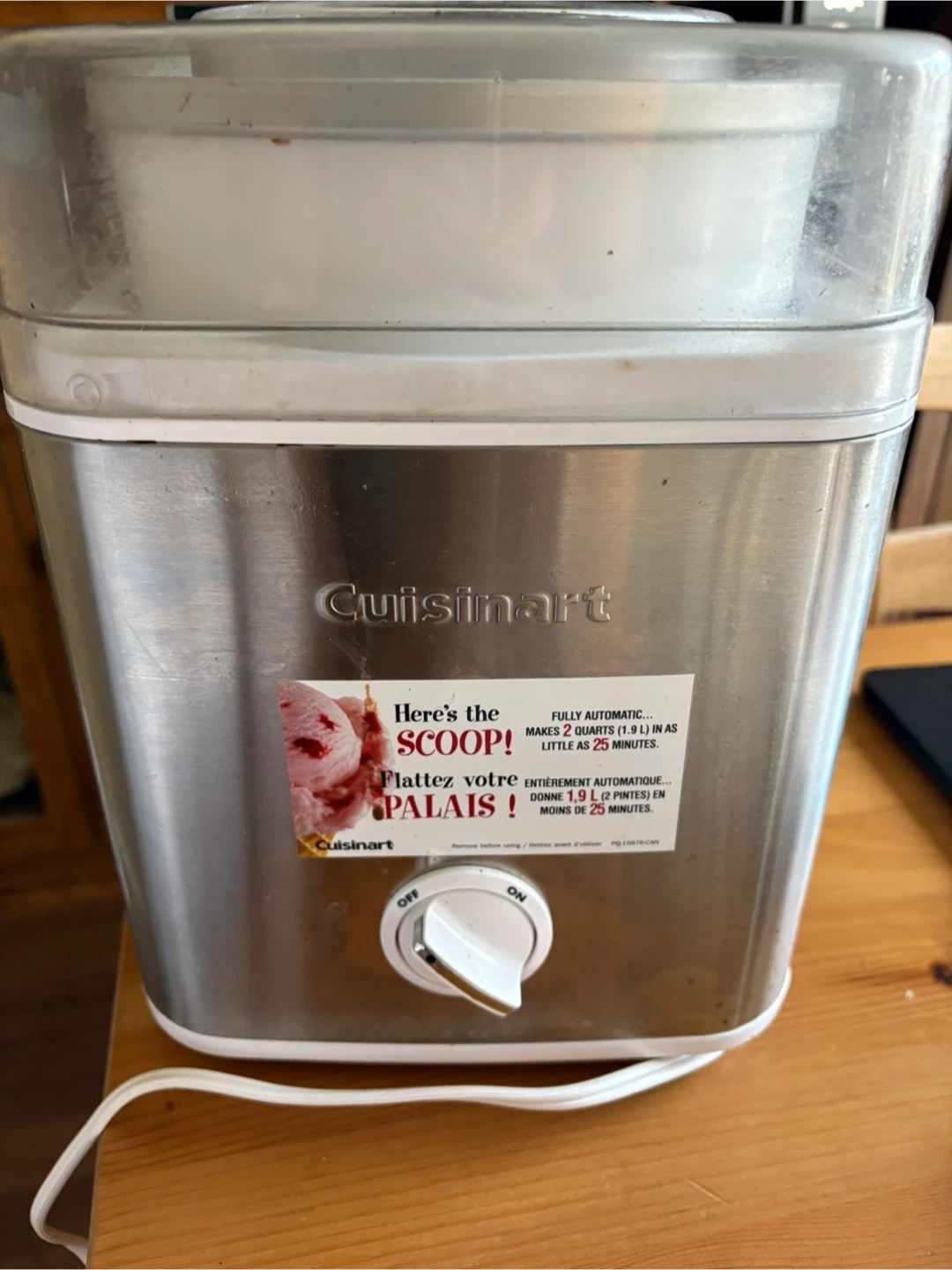 I'm selling a Cuisinart ice cream maker that makes up to 2 quarts (1.9 L) in as little as 25 minutes. It's fully automatic and ready to help you make delicious frozen treats at home!