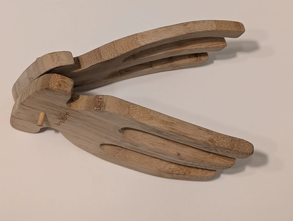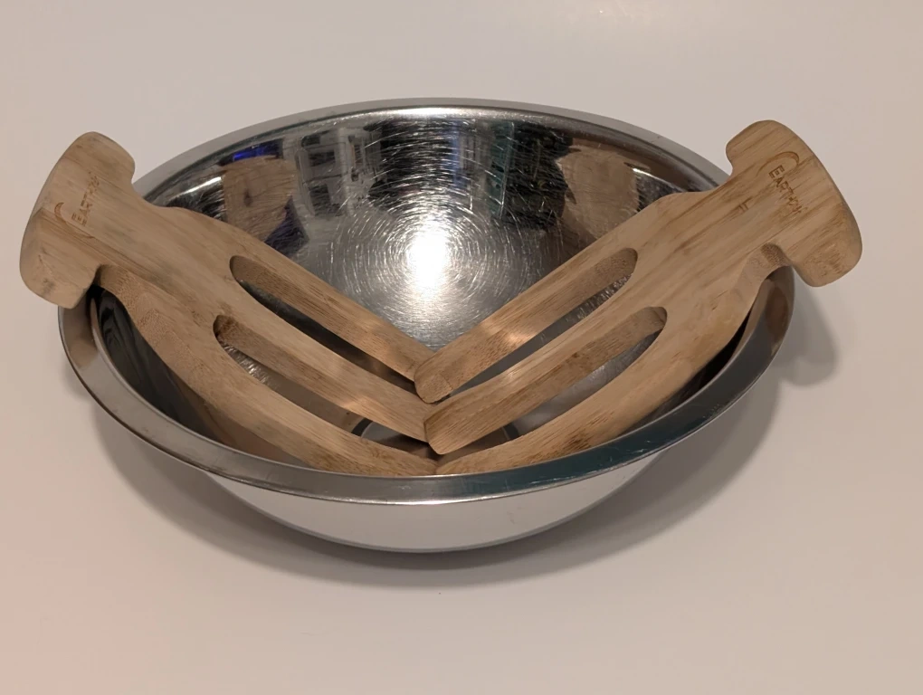 Selling a pair of Earth Home bamboo salad servers. They are in great condition and have a unique, ergonomic design for easy use.