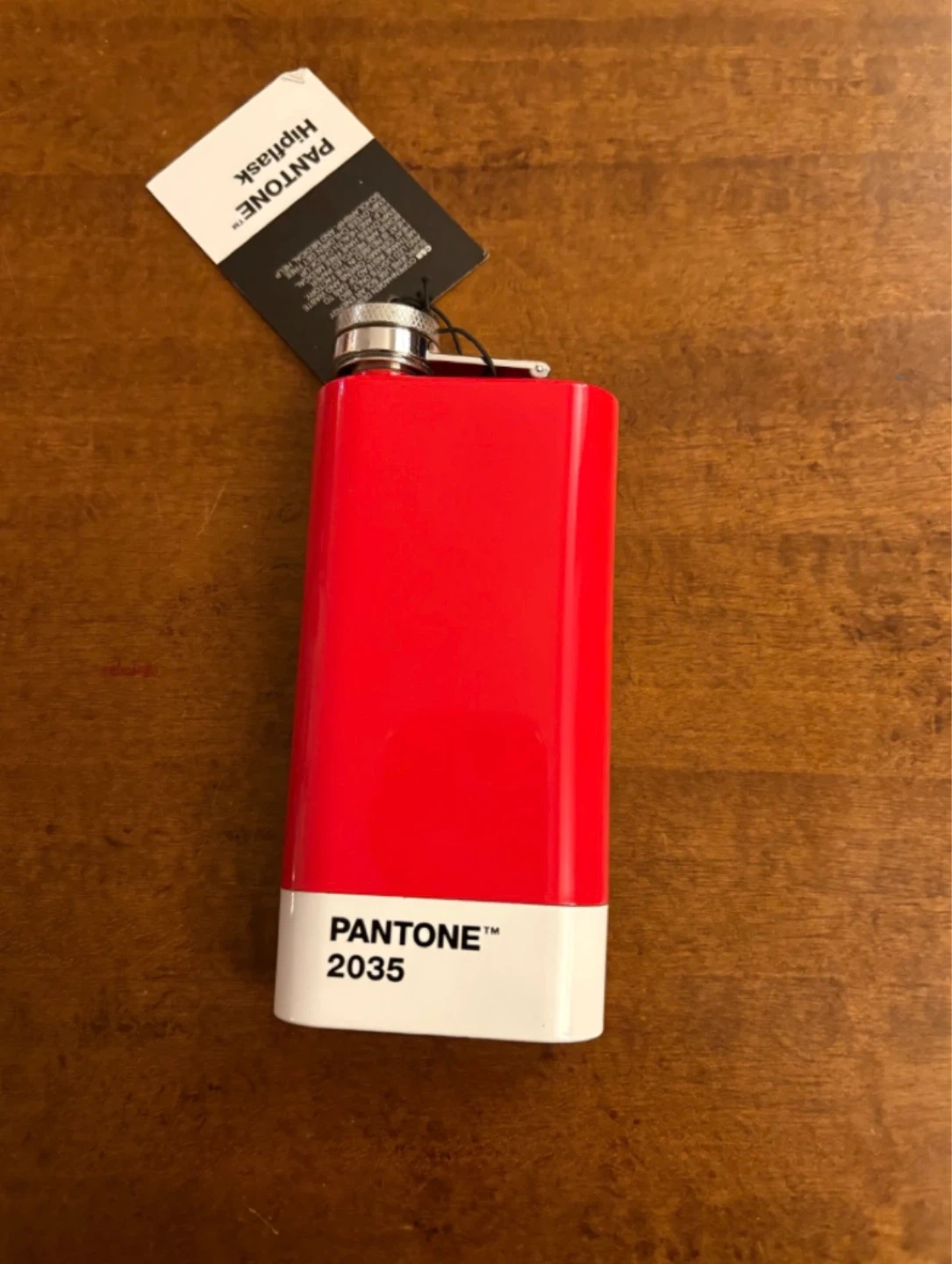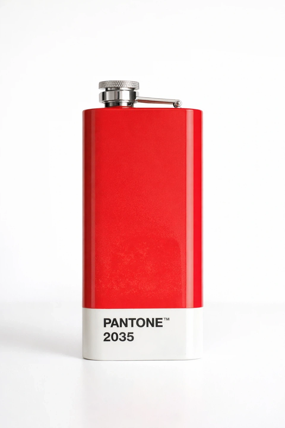 Keywords: Pantone, hip flask, red flask, Pantone 2035, design gift, colour system, barware, collectible, modern design