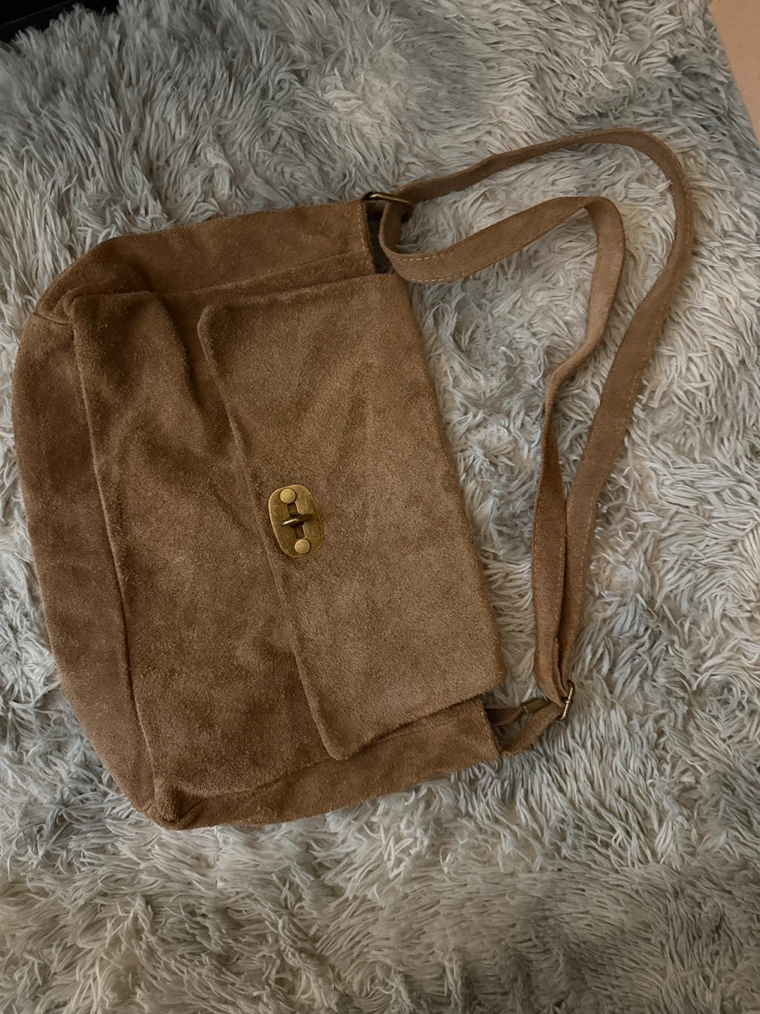 Selling a stylish brown suede shoulder bag. It's in great condition and perfect for everyday use! The suede material gives it a unique and fashionable look.