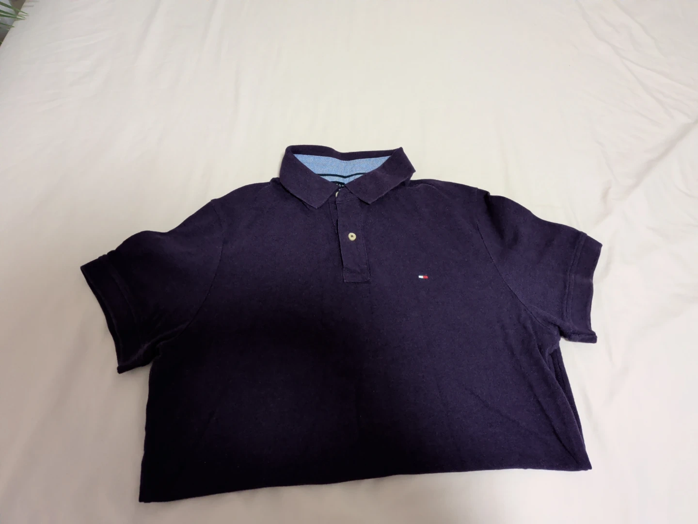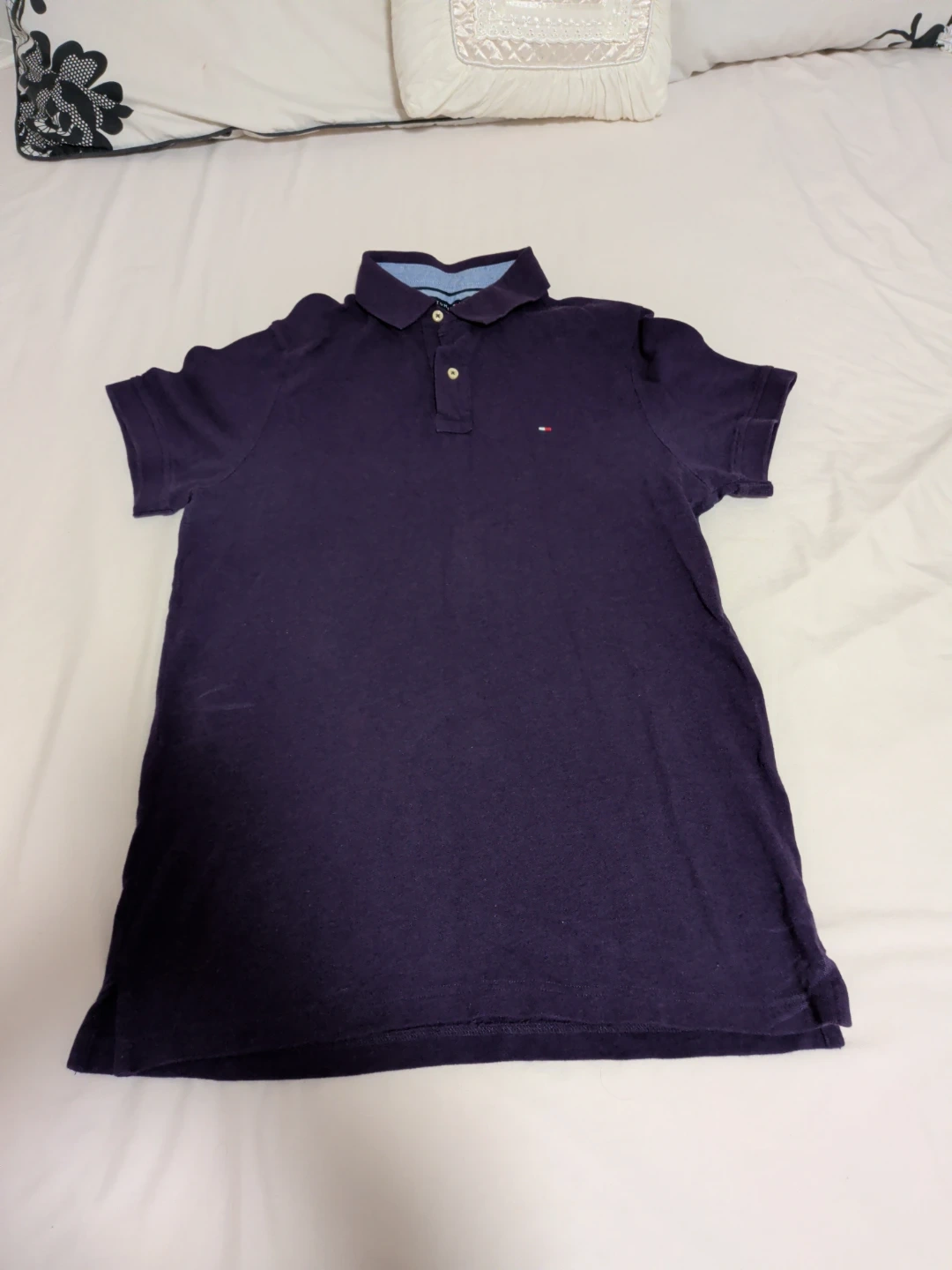 Selling a Tommy Hilfiger polo shirt. It's in great shape and has that classic, clean look. Perfect for casual wear or dressing up a bit. The material is comfortable and breathable, making it ideal for everyday wear. A staple piece for any wardrobe!