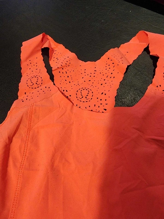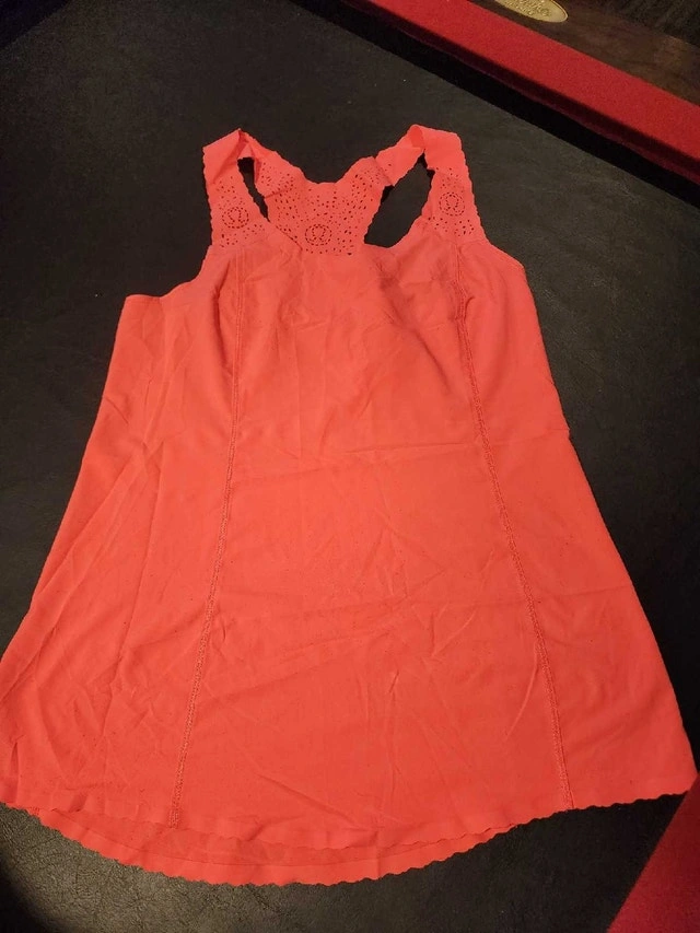 Get ready to add a pop of colour to your workout wardrobe with this Lululemon tank top! In vibrant orange, it features a stylish cut-out design around the shoulders and is in used condition, ready for its next adventure.