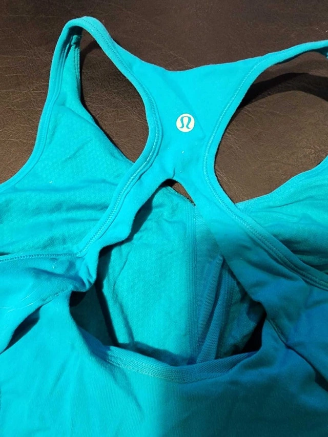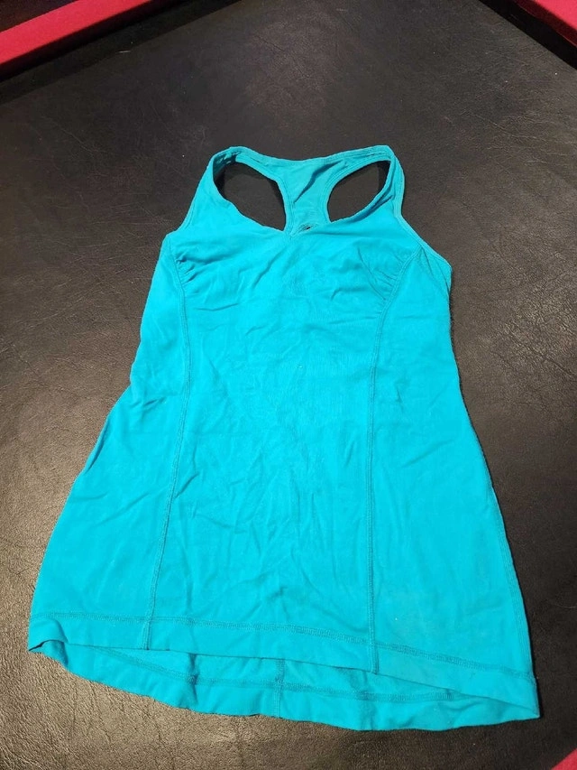 This is a used Lululemon athletic top, size small (4-6), perfect for yoga, running, or workouts, featuring a racerback design. It’s in good condition, ready for your active lifestyle!