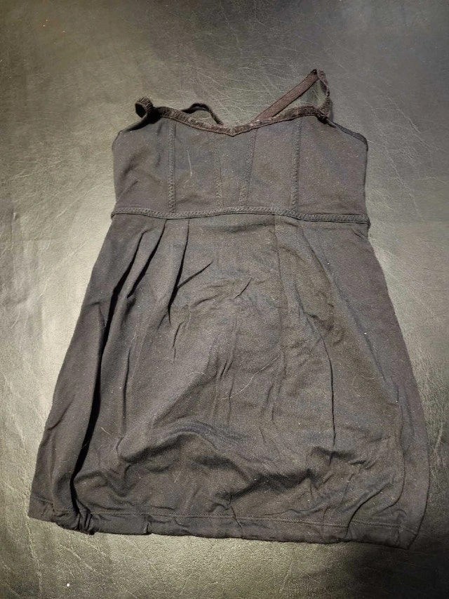 This is a Lululemon black tank top with a built-in bra, perfect for workouts or casual wear. It's in good condition, showing some signs of wear but plenty of life left! Additional features include: * Built-in bra for support * Comfortable fit * Classic black colour. If you see this ad, it's still available!