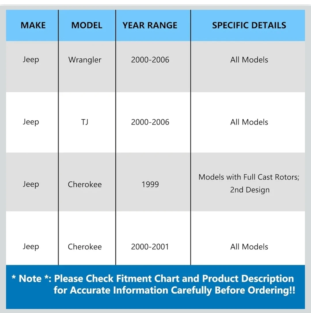 ✔ 1999 Jeep Cherokee – Full Cast Rotors (2nd Design)