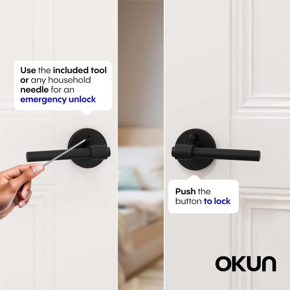 - Push-button privacy lock for interior use