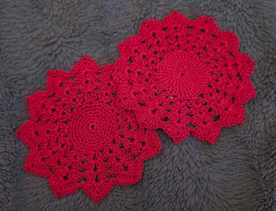 Small coasters are $6 each and table doilies $15 each, please message me in regards to colour, design and how many pcs.