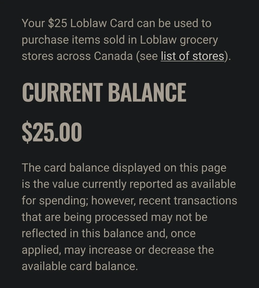 Selling a Loblaw physical giftcard with a $25 value! Redeemable at any Loblaw grocery store.
