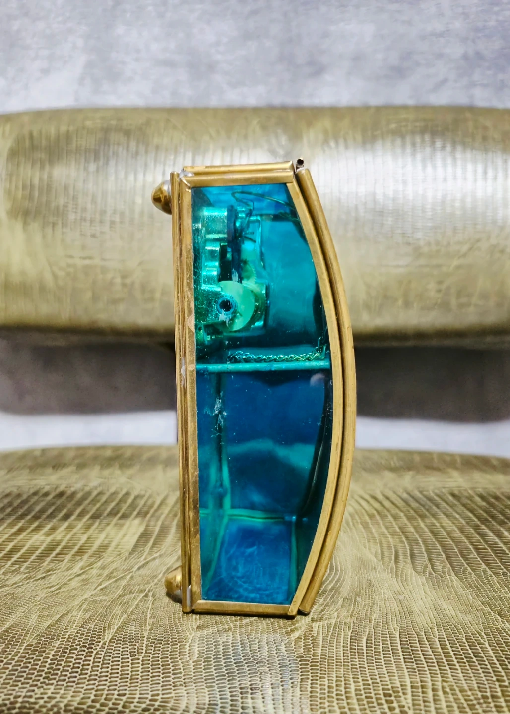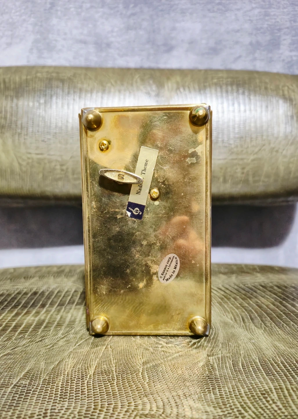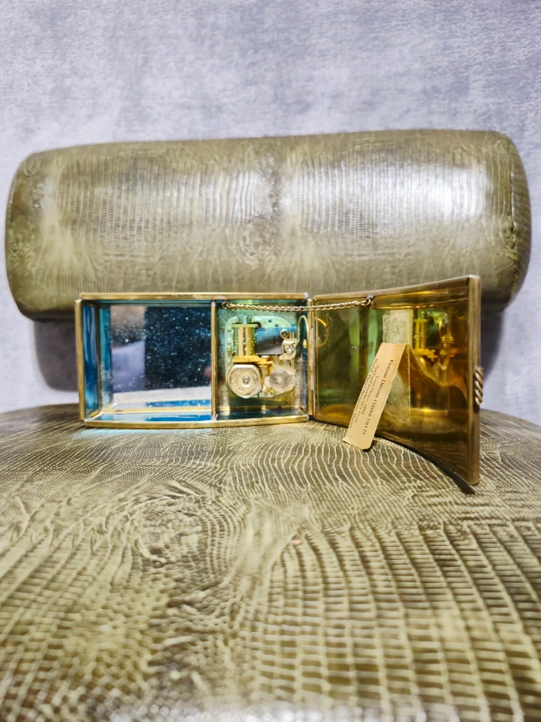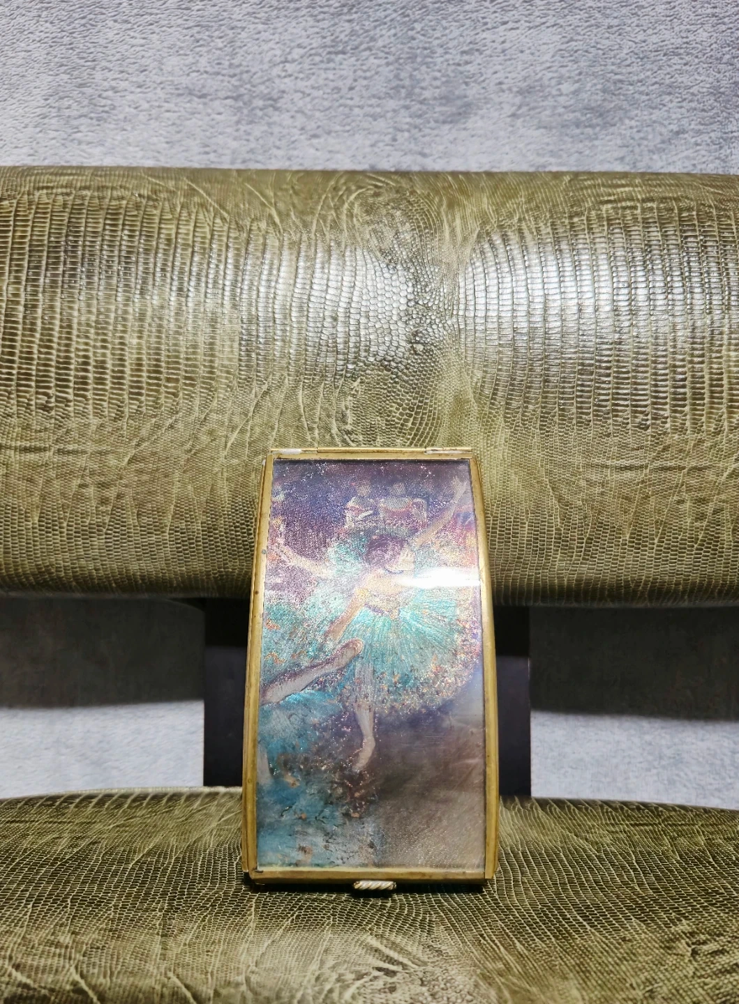 It features a glass and brass construction with a lovely ballerina image on the lid.