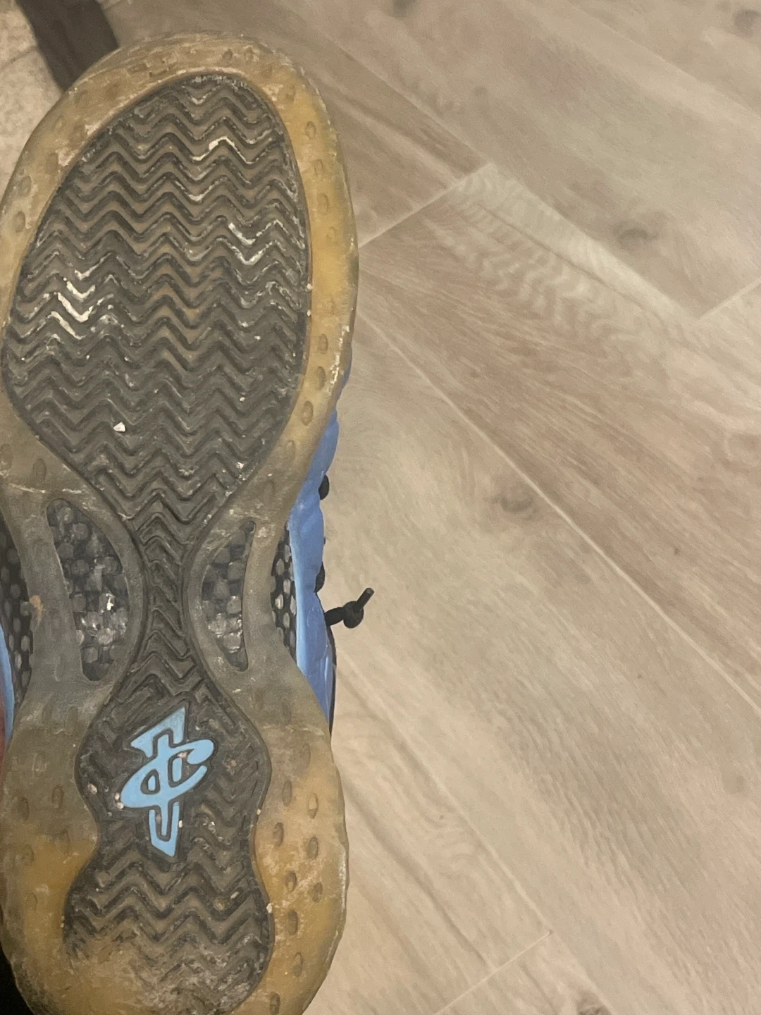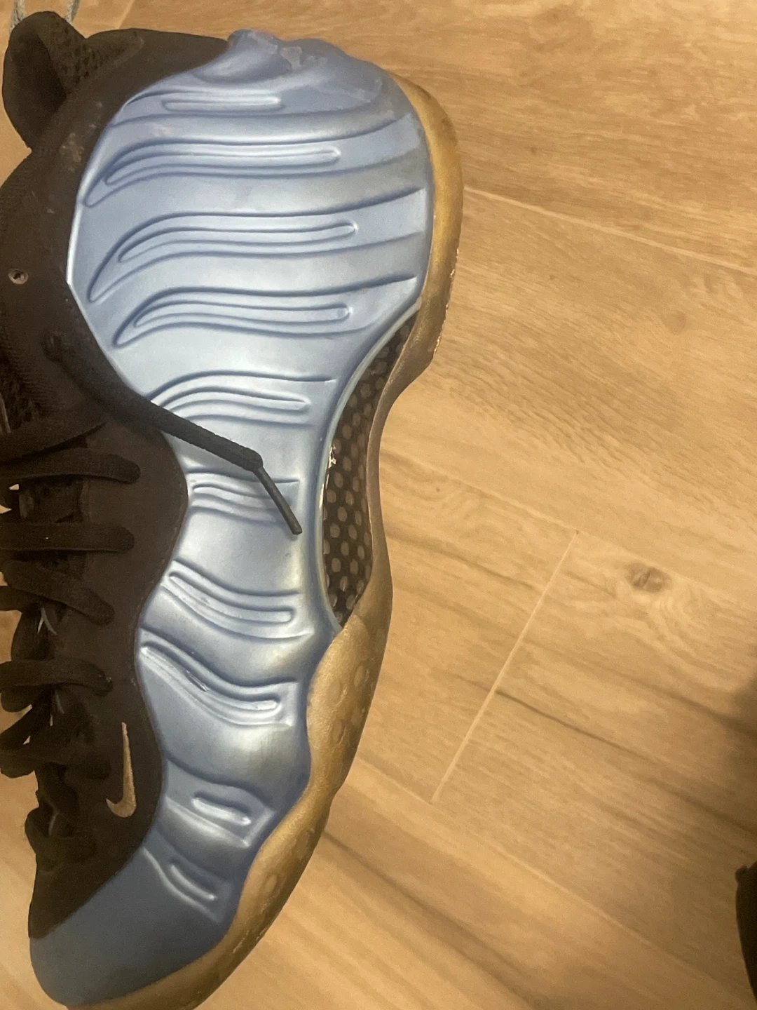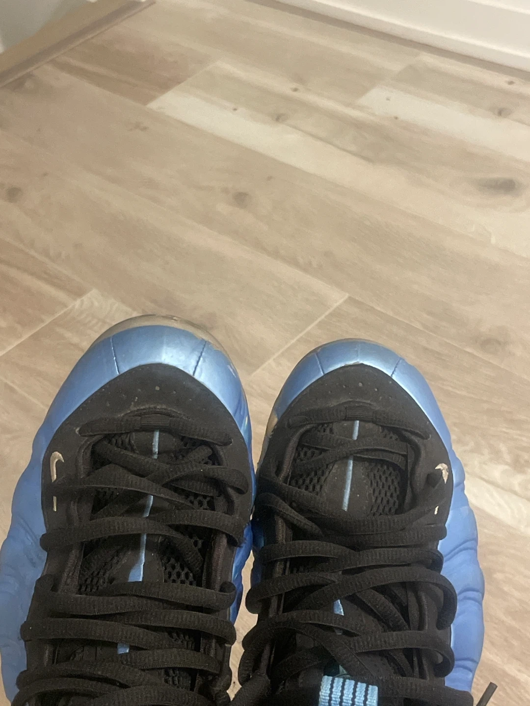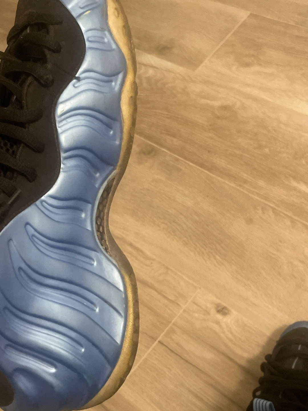 Selling a pair of Nike Air Foamposite One shoes in black and metallic gold. They show signs of wear, as seen in the photos, but still have lots of life left!