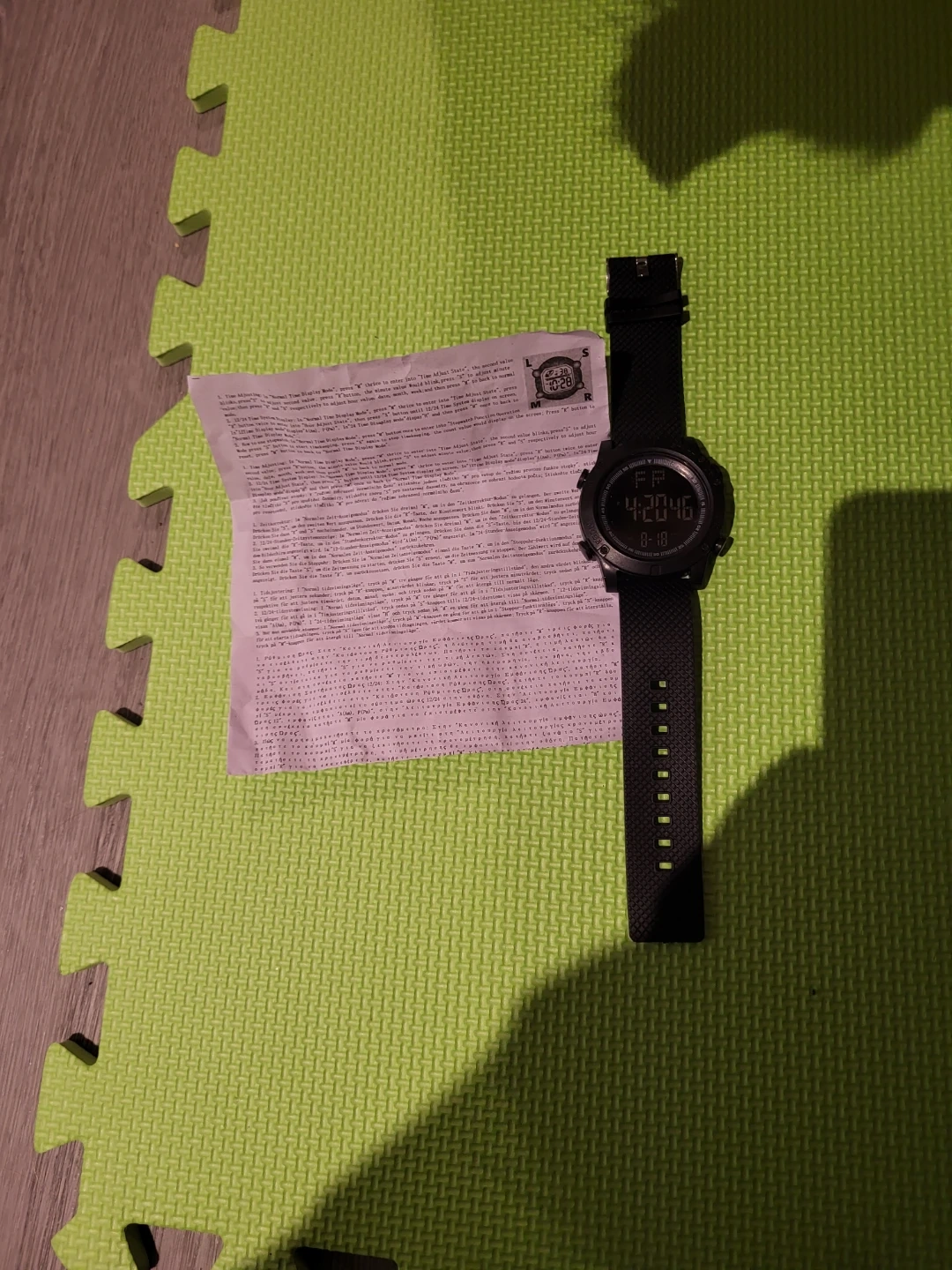 Selling a black digital watch. It's in good condition and ready for a new wrist! The watch displays the time and date. It's a practical and stylish accessory for everyday wear.