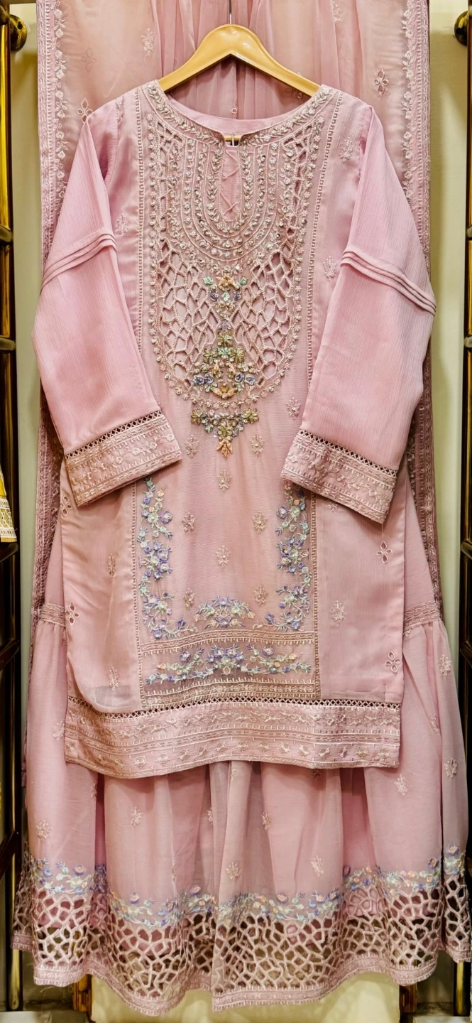 *CHIFFON 3 PIECE WITH GHARARA PANT*