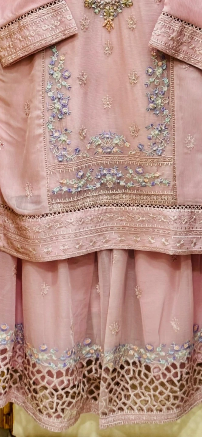 Chiffon Fully Heavy Embroidered Gharara With 50 inches Ghera And Cutwork