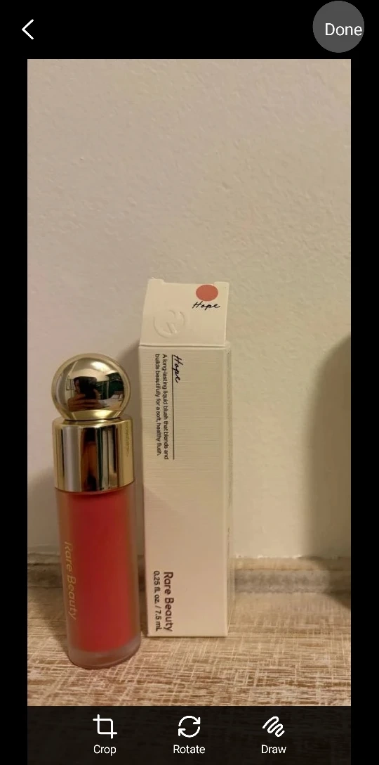Selling a Rare Beauty liquid blush in the shade Hope. It's a long-lasting liquid blush that blends beautifully for a soft, healthy flush. Size is 0.25 fl. oz./7.5 mL