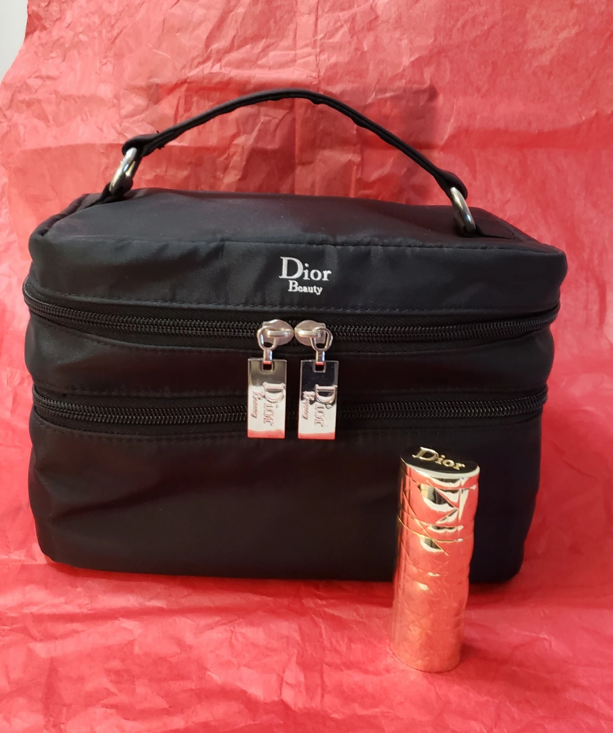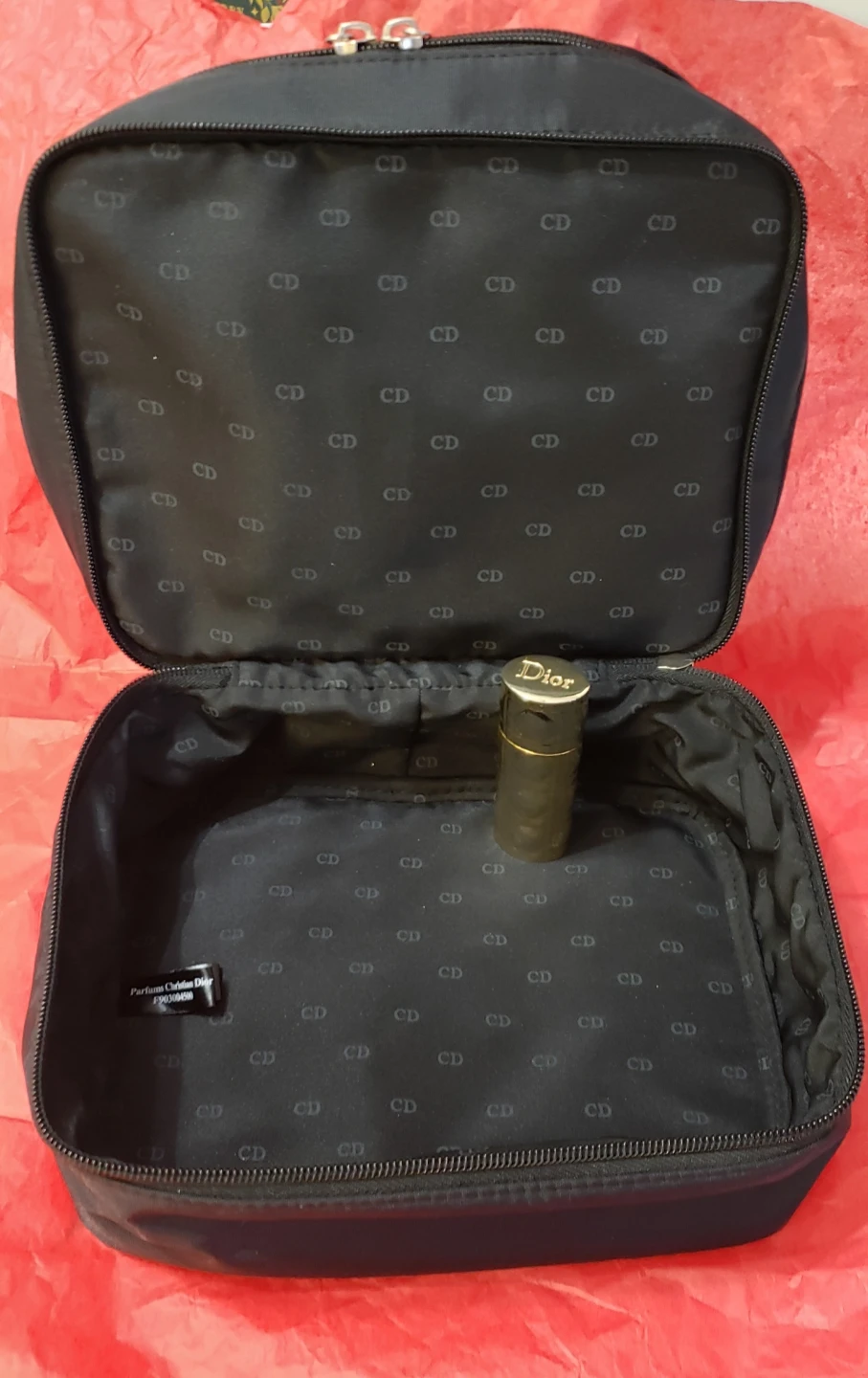 Authentic DIOR cosmetics bag and perfume atomizer, both brand new never used. Atomizer measures 3.5 inches, refillable so you can take your favorite fragrance with you in your purse. This would make a lovely gift for the girl who has everything, and has great taste.