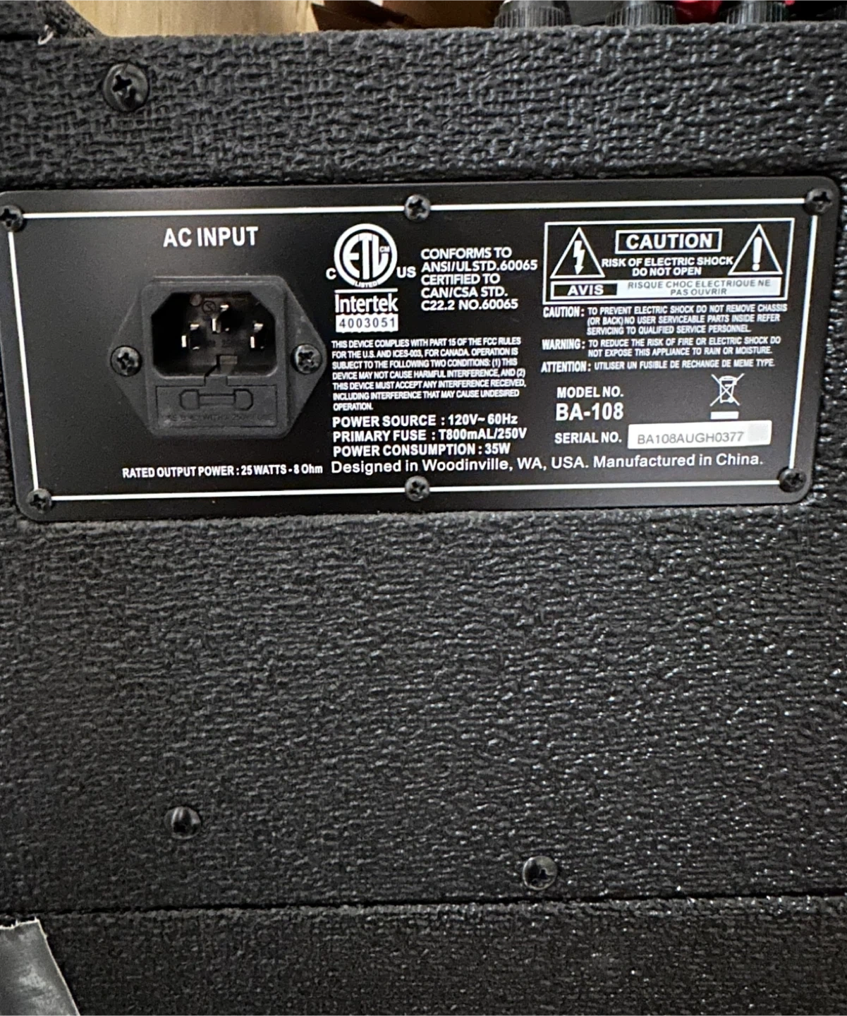 Selling an Ampeg BA-108 bass amplifier. It's in fair condition, but working well and ready to go! It comes with the power cable. Great for practicing at home or small gigs