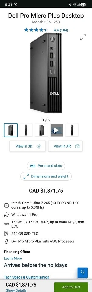 Brand new Core Ultra 7 / 16Gb DDR5 / 512Gb ssd / Dell Micro Plus