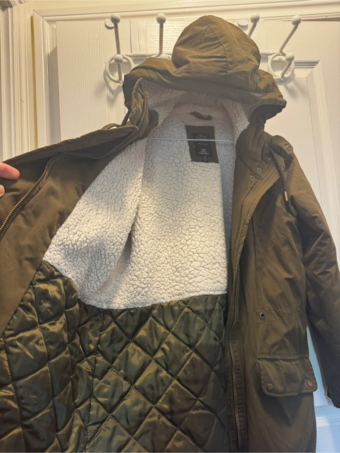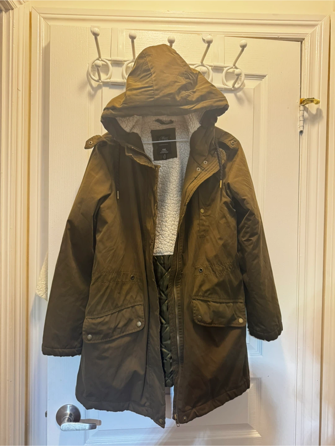 Denim Wear parka in a lovely olive green colour! It's lined with sherpa for extra warmth and comfort. The size is M. Perfect for staying cozy during those chilly Canadian days!