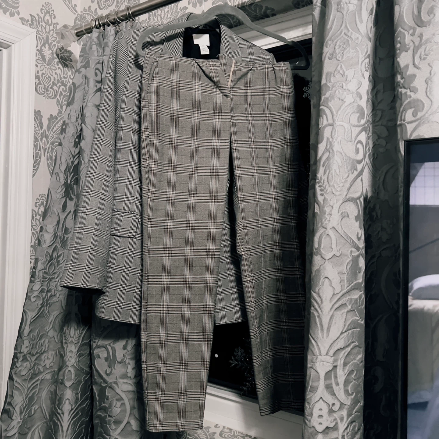 Selling a cute H&M plaid suit set! The size is US 2. It's in great condition and ready for a new owner. The material is a stylish plaid pattern. Perfect for work or a night out!