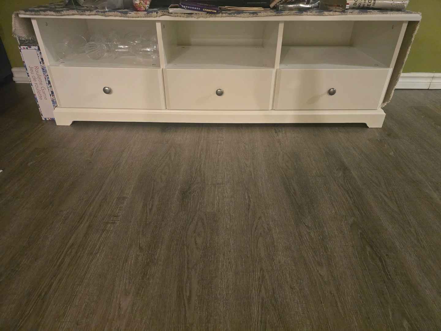 Selling a white storage cabinet that would be perfect for any room! It features open shelves and drawers for versatile storage options. It's in great condition and ready for a new home!