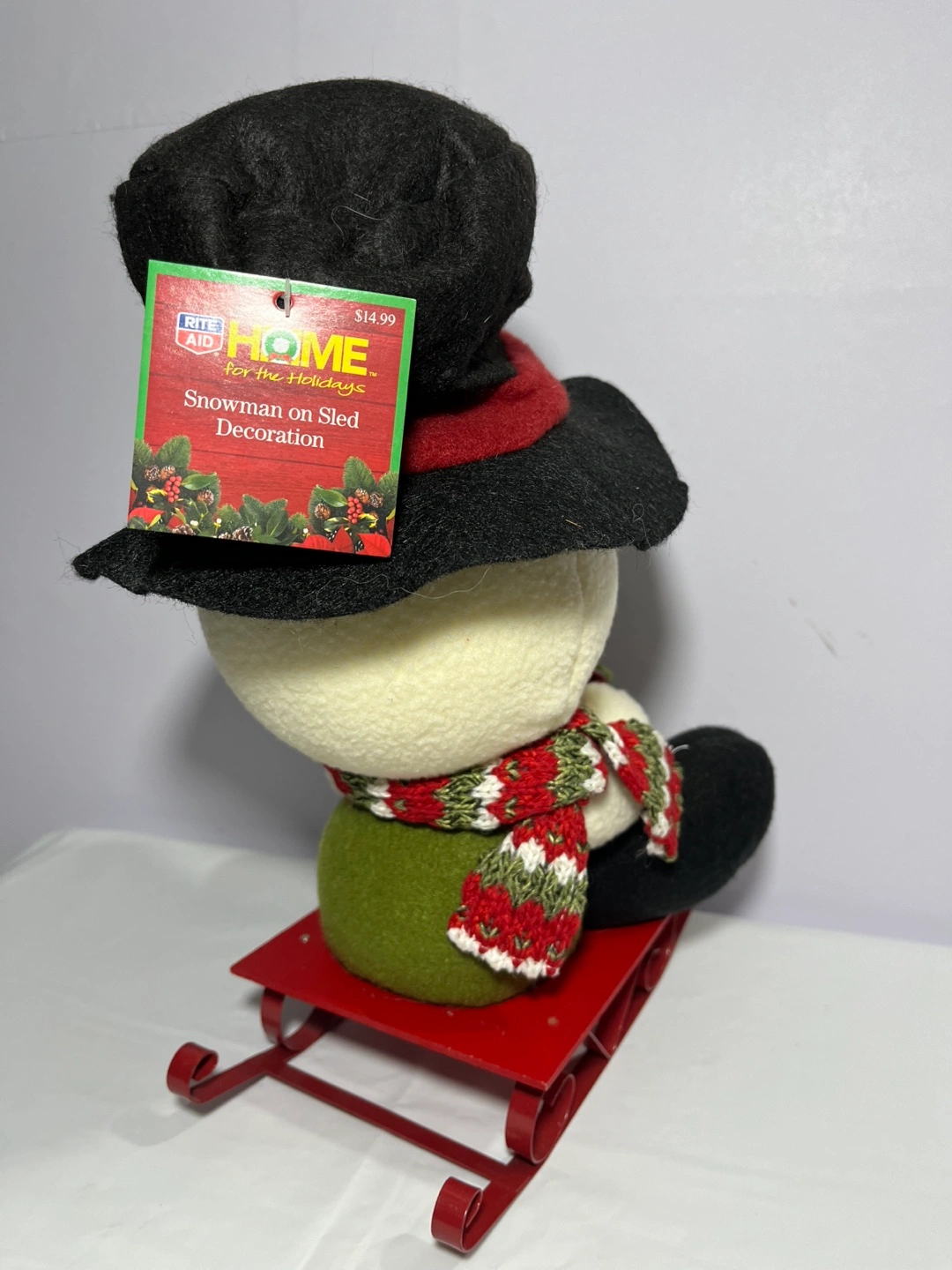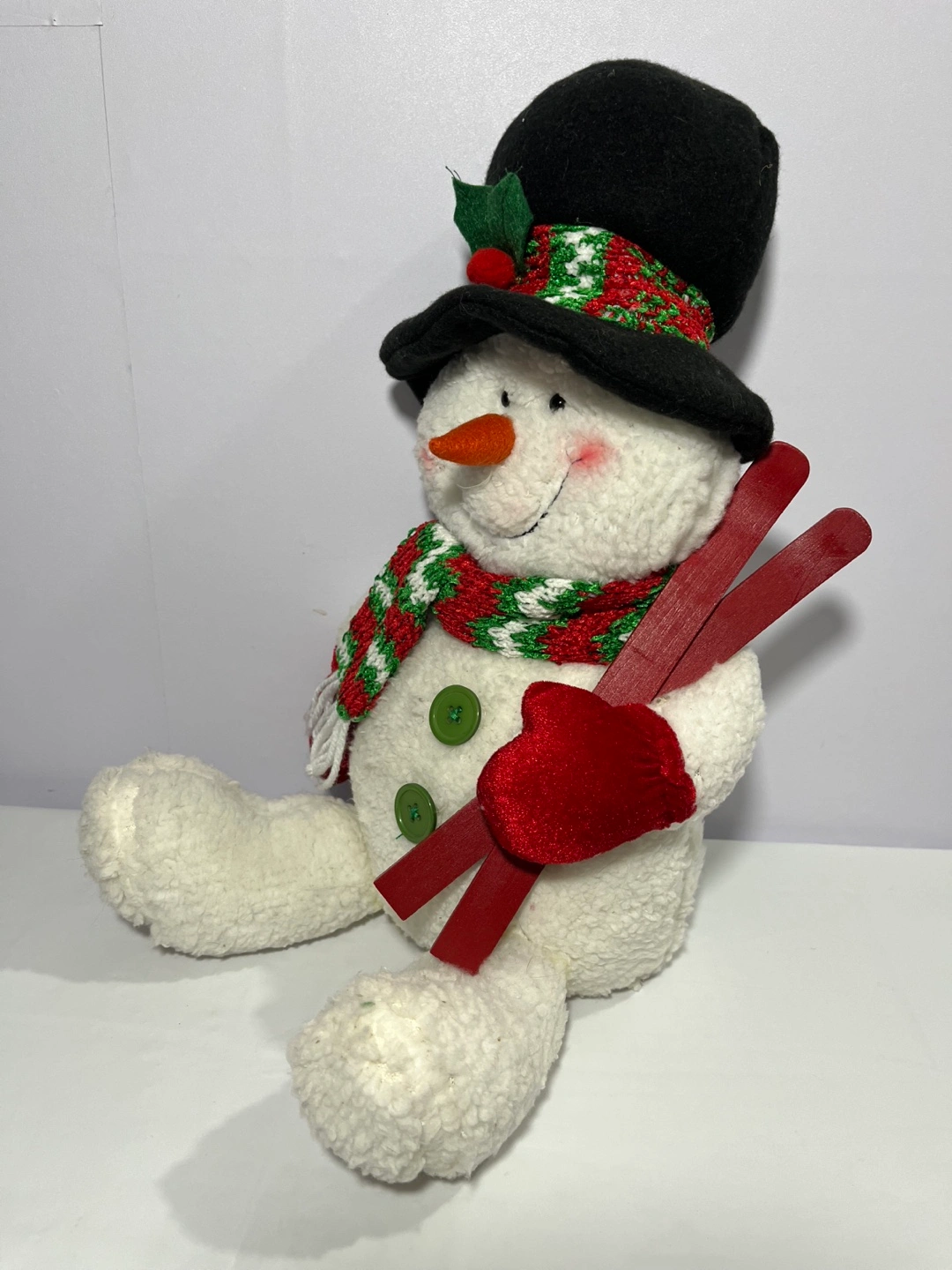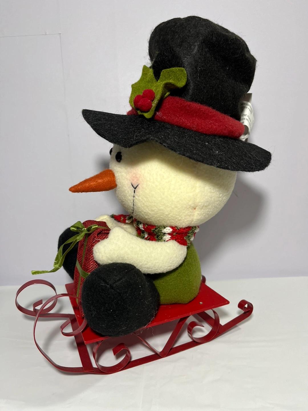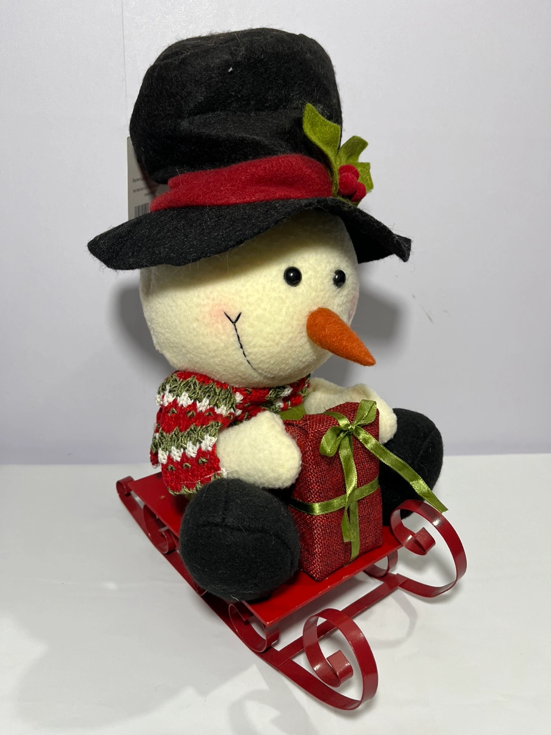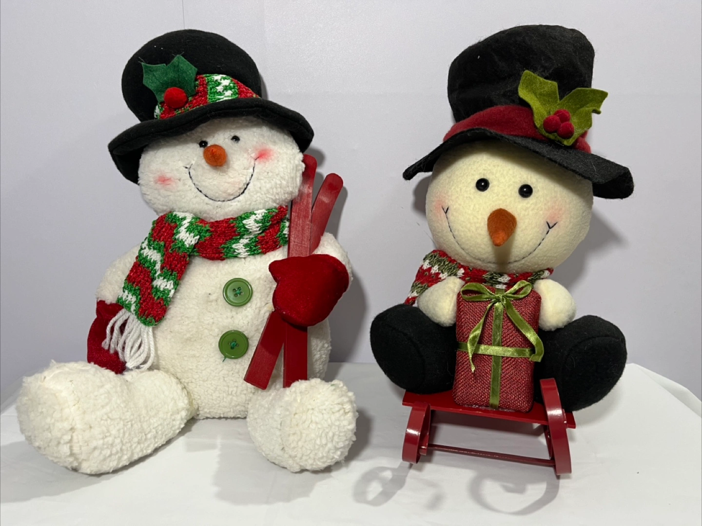 Add some festive cheer to your home with these adorable snowman plush decorations! They're perfect for the holidays and will bring a smile to anyone's face. One snowman is holding skis and the other is sitting on a sled with a gift. They're in good condition and ready to spread some holiday decor!