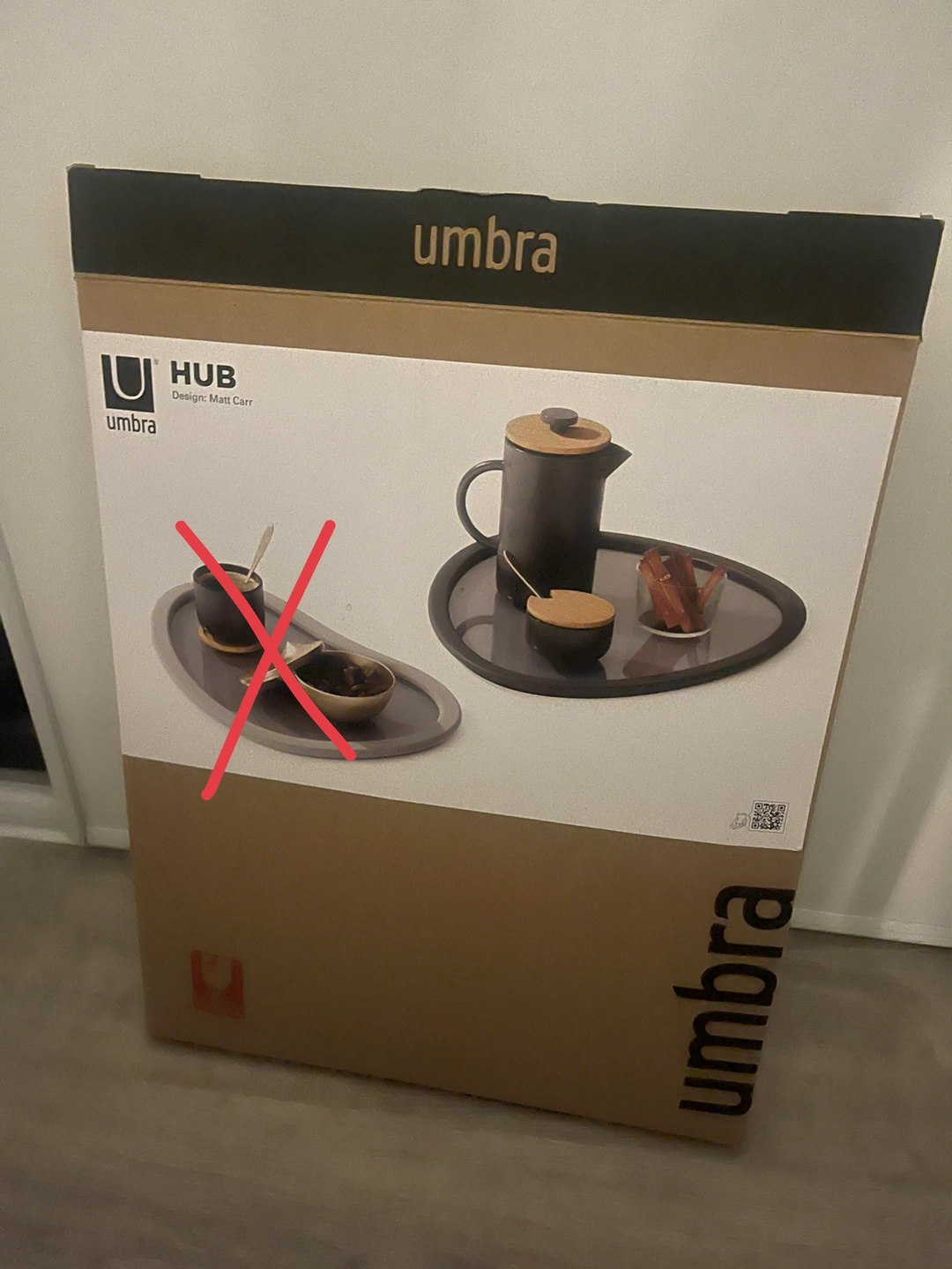 Hi! I'm selling a brand new, unopened Umbra Hub Serving Tray in Dark Grey. This is the large size (17.25" \times 17").