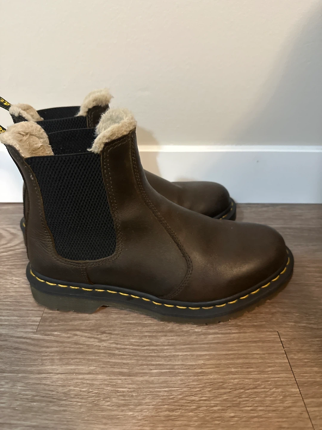 Selling a pair of Dr. Martens 2976 Chelsea boots. They are a rich brown colour and lined with faux fur to keep your feet warm and cozy. Size US 8.