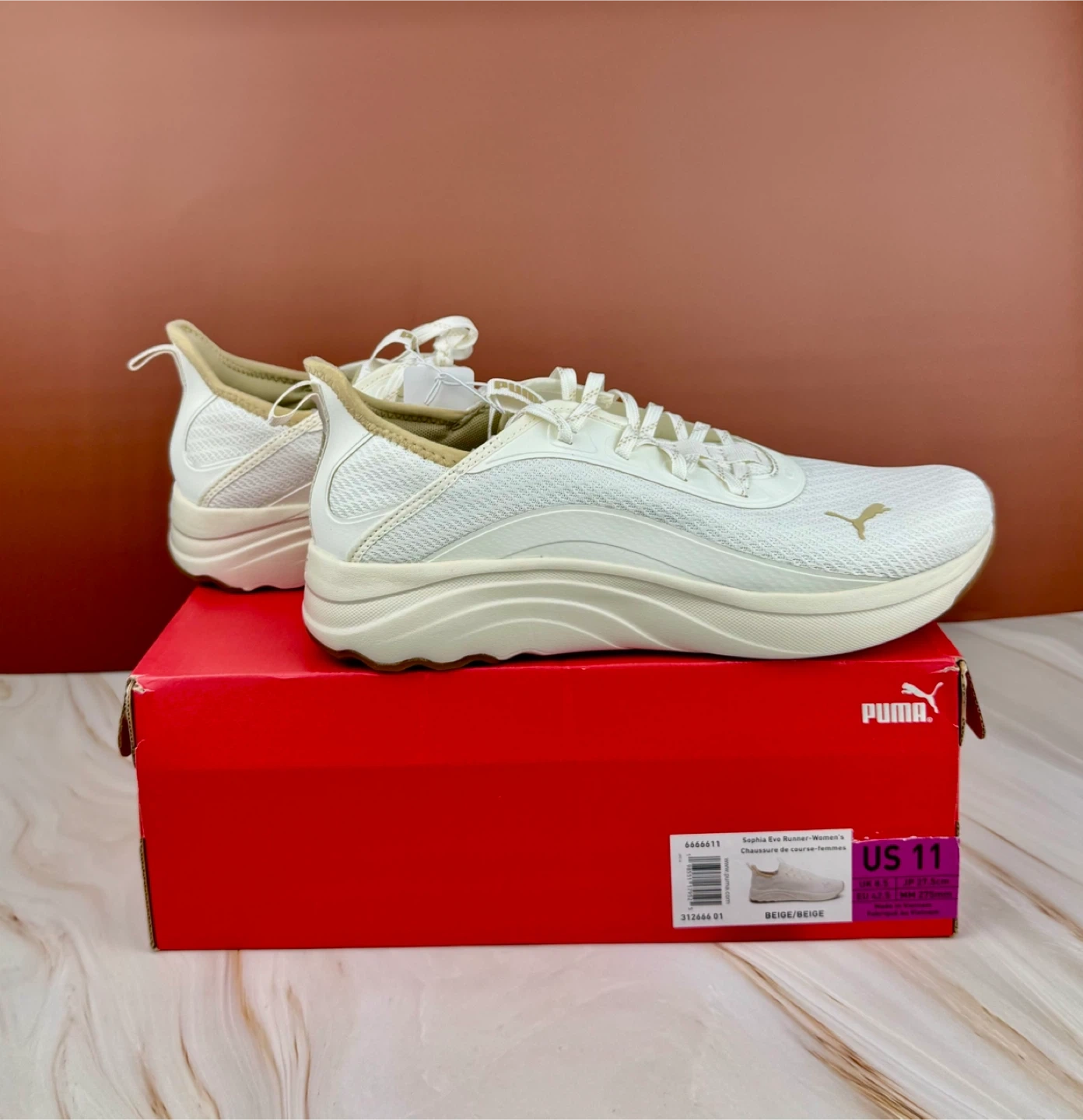 ๐ Selling a brand new pair of Puma Sophia Eve Runner women's shoes in size US 11. They come in the original box and are in beige/cream colour.