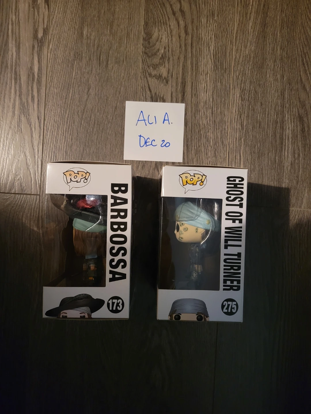 Selling two Funko POP! figures from Disney's Pirates of the Caribbean. Included are Barbossa (173) and Ghost of Will Turner (275). Both figures are in their original boxes!