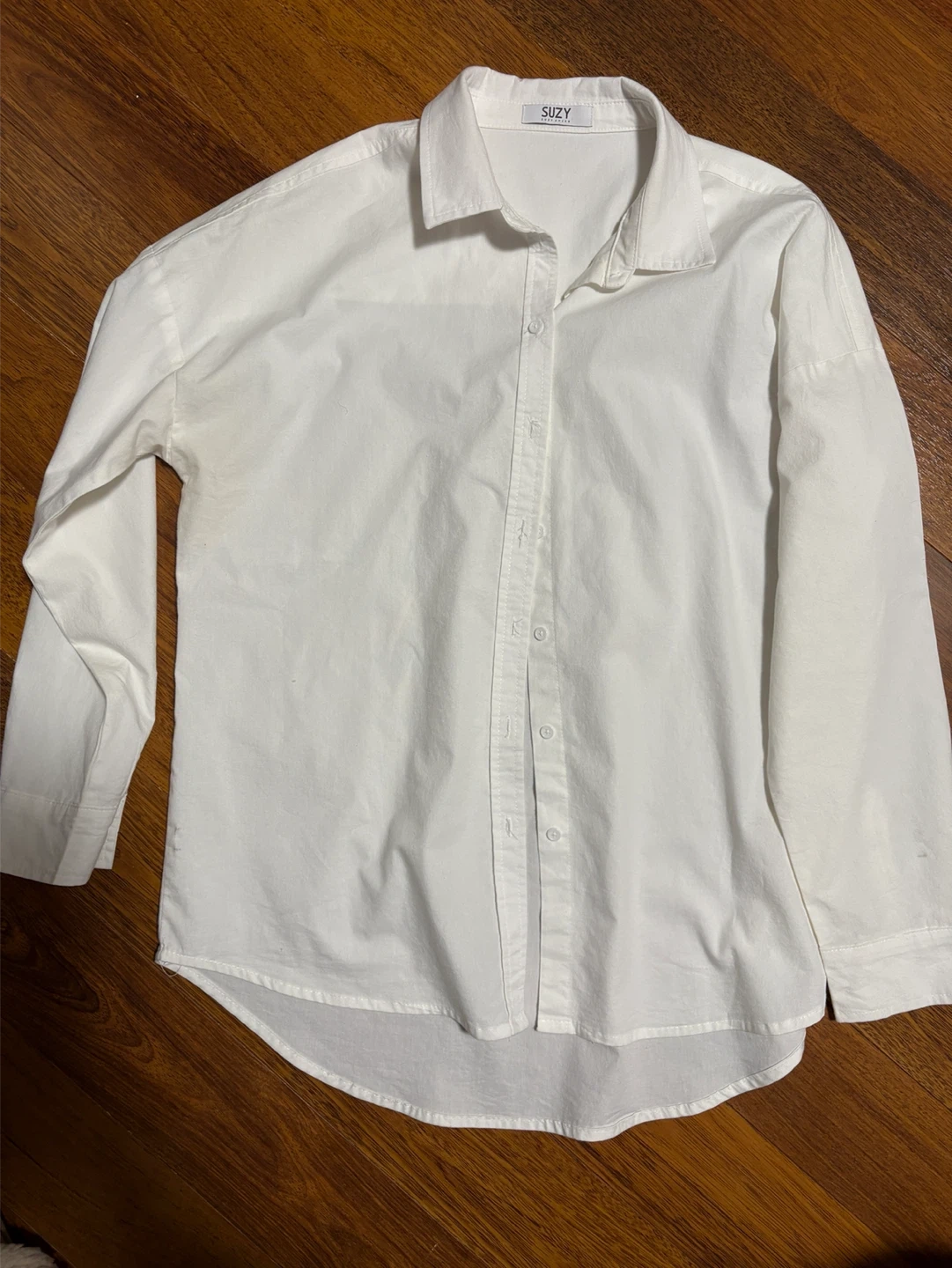 white button-down shirt from Suzy Shier! It's a crisp, clean look that's perfect for layering.