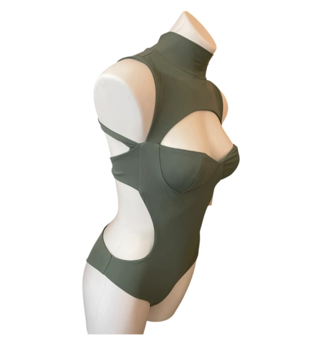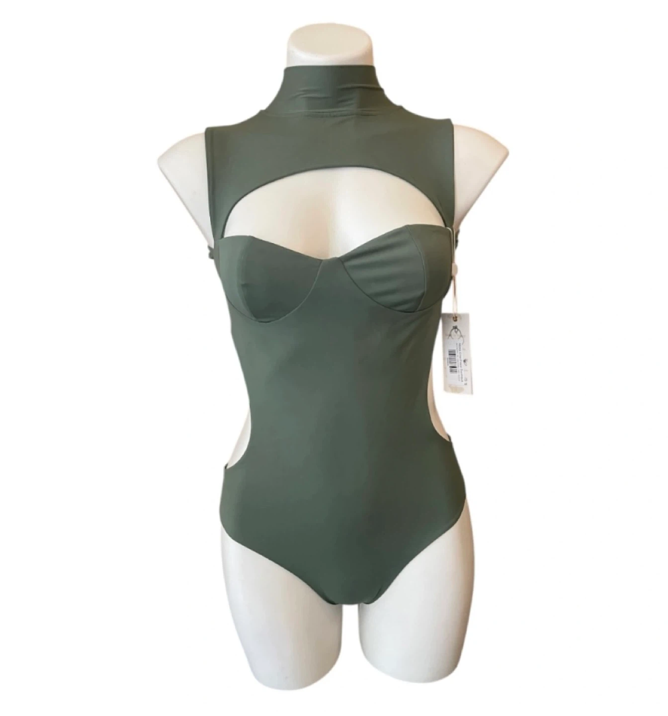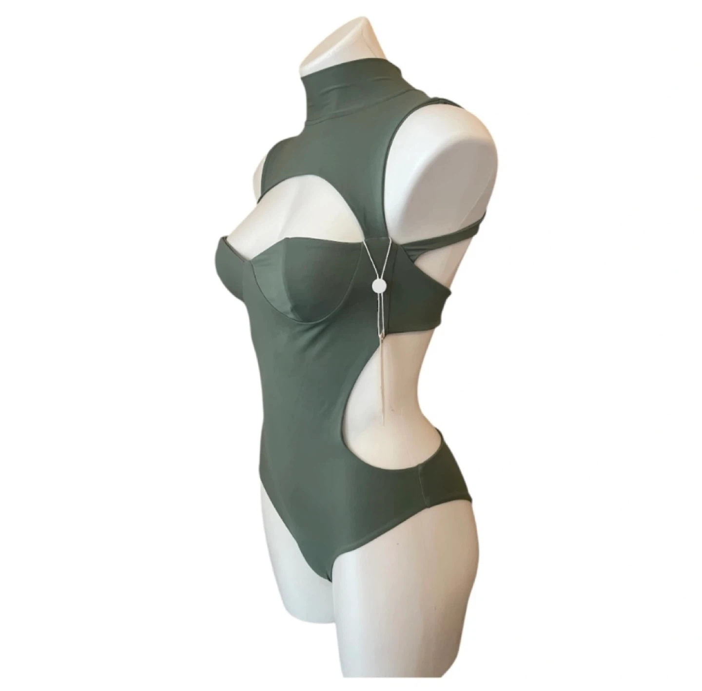NWT High Neck One Piece Monokini Swimsuit Cut Out Olive Green XS