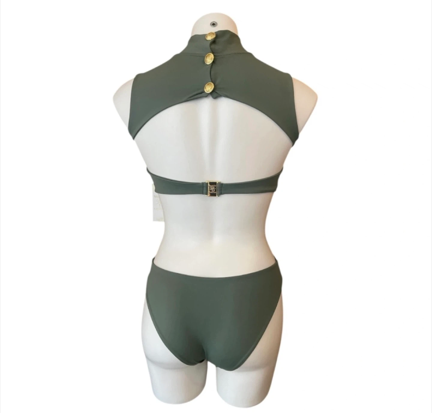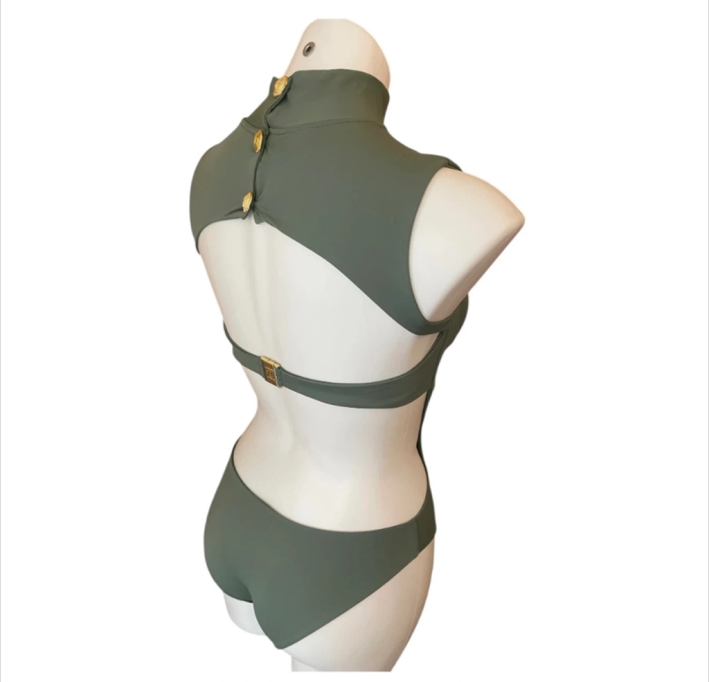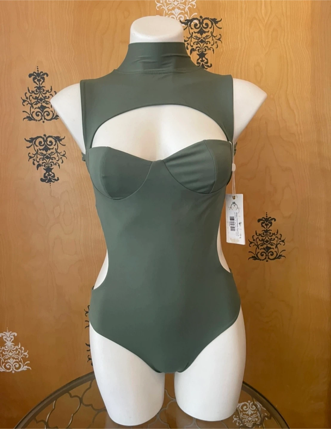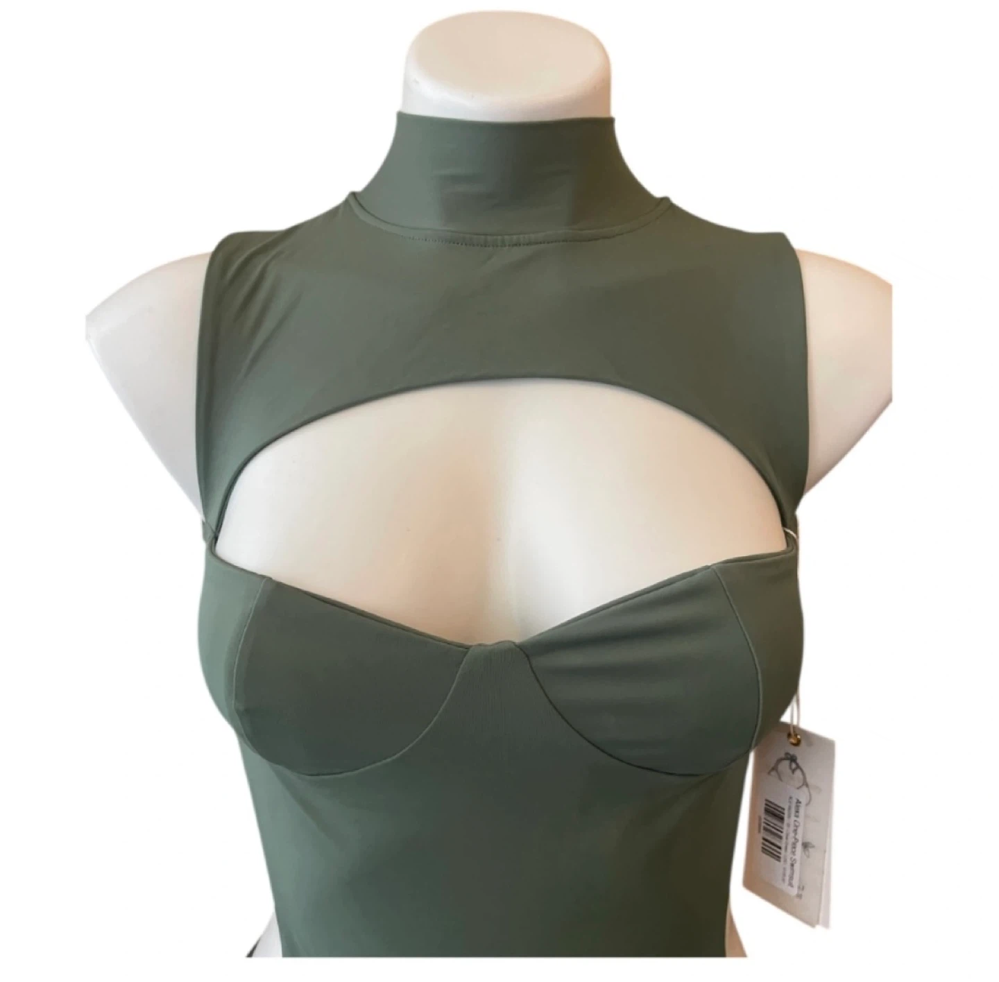 NWT High Neck One Piece Monokini Swimsuit Cut Out Olive Green XS