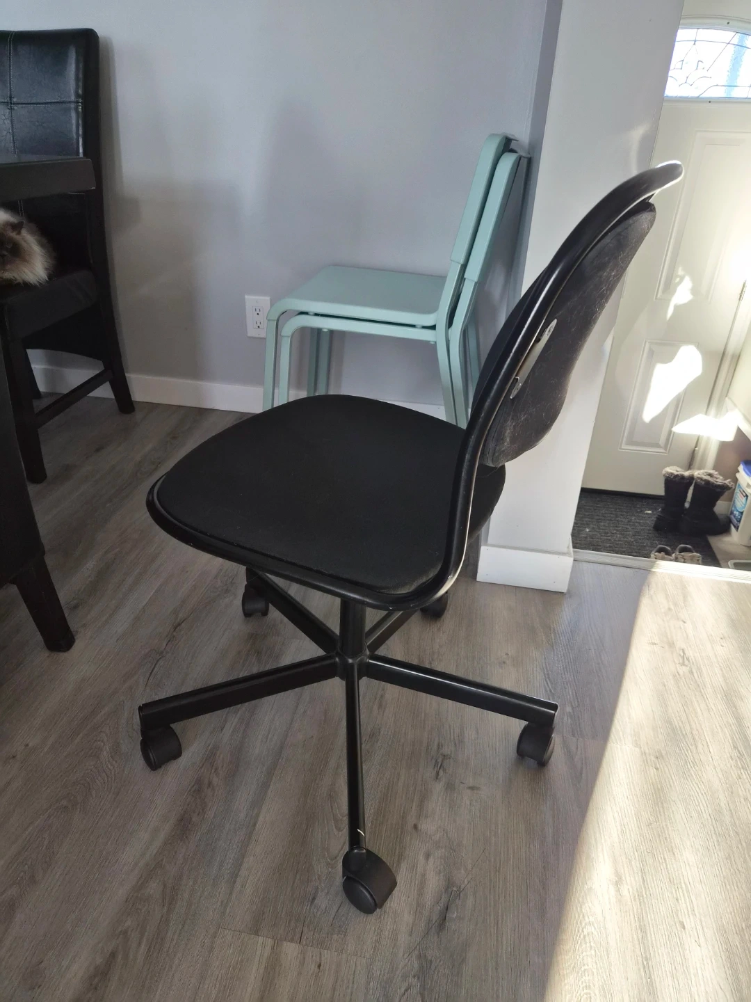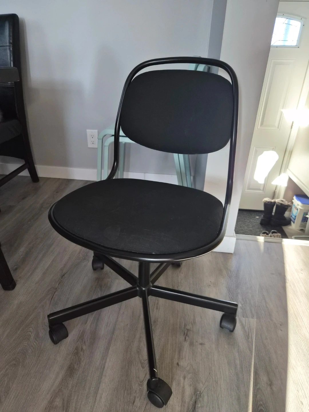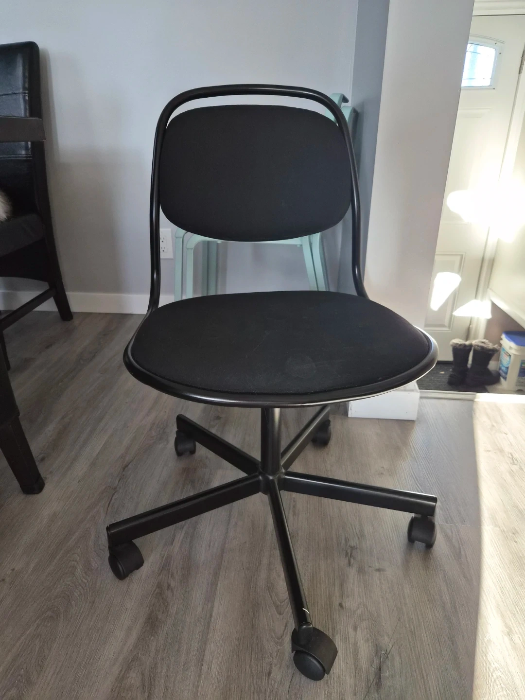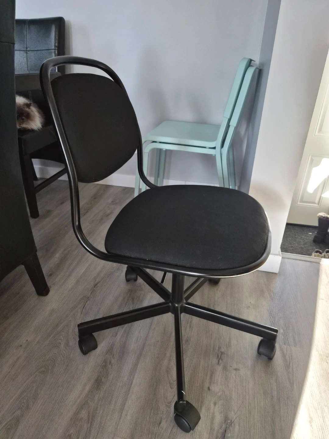 Selling a black office chair. It's in good condition and ready for a new workspace! Perfect for a home office or student desk