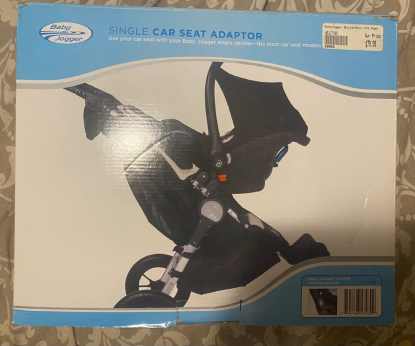 Baby Jogger single car seat adaptor. Fits most car seat models. Designed to fit several popular car seats, including Maxi Cosi, Peg Perego, Britax, Graco and Evenflo models.