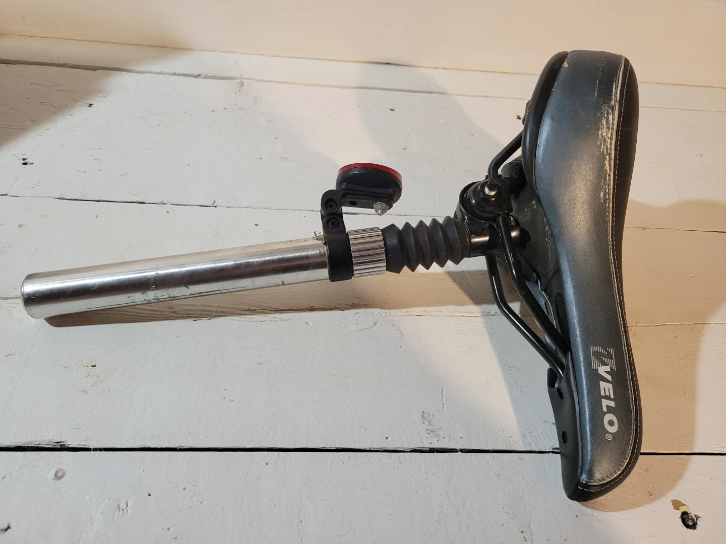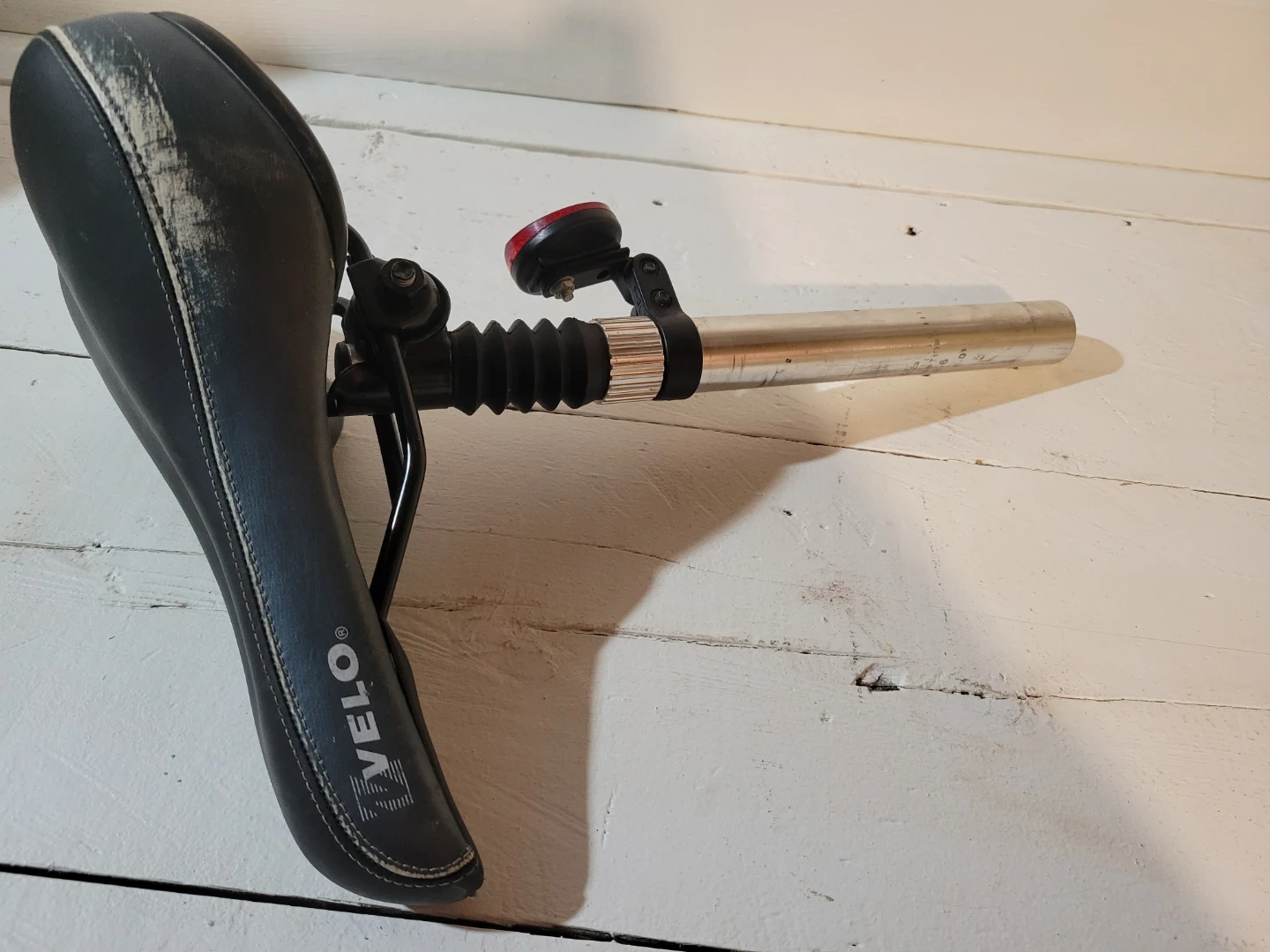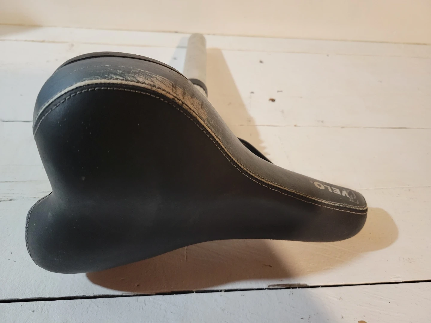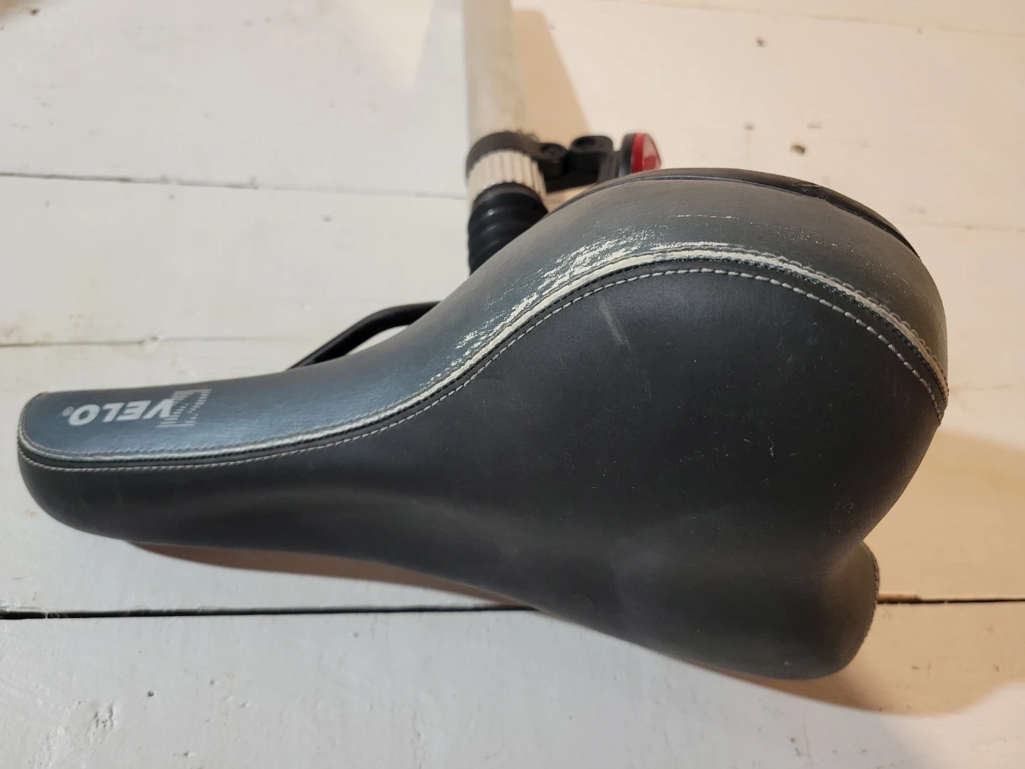 Selling a Velo bike seat that's in decent shape! It comes with an aluminum post that's about 1 & 1/8 of an inch in diameter. Perfect for your next cycling adventure! Suspension seat post.