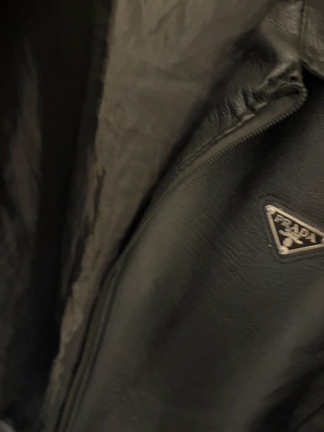 Selling a stylish Prada black leather jacket. It's in great condition and ready for a new owner! The jacket features the iconic Prada logo. Feel free to ask any questions!
