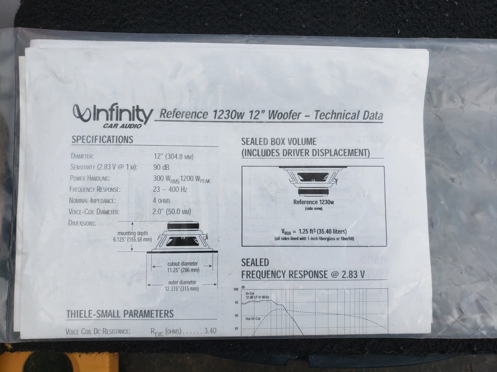 Complete Bass Package: Infinity Reference 12" Subwoofer + Sony GTR Amplifier + 1 Free Speaker ​Looking to add some high-quality bass to your ride? This is a perfectly matched setup featuring a 12" Infinity Reference sub and a heavy-duty Sony GTR series amplifier. This isn't "cheap" modern gear; these are solid, well-built components known for clarity and reliability. ​The Subwoofer: Infinity Reference 1230w (12-inch) ​Power Handling: 300W RMS / 1200W Peak. ​Features: High-roll rubber surround (durable, won't rot like foam) and a polypropylene cone for tight, punchy bass. ​Condition: Excellent, comes with original technical data/spec sheet. ​The Amplifier: Sony XM-2002GTR ​Power: 500W RMS x 1 (Bridged at 4 ohms). It provides plenty of headroom for the sub to prevent distortion. ​Quality: CEA-2006 Compliant. This is a "true power" amp with a massive heat sink to keep it cool. ​Adjustments: Features on-board Variable Bass Boost and Low-Pass filters to tune your sound.