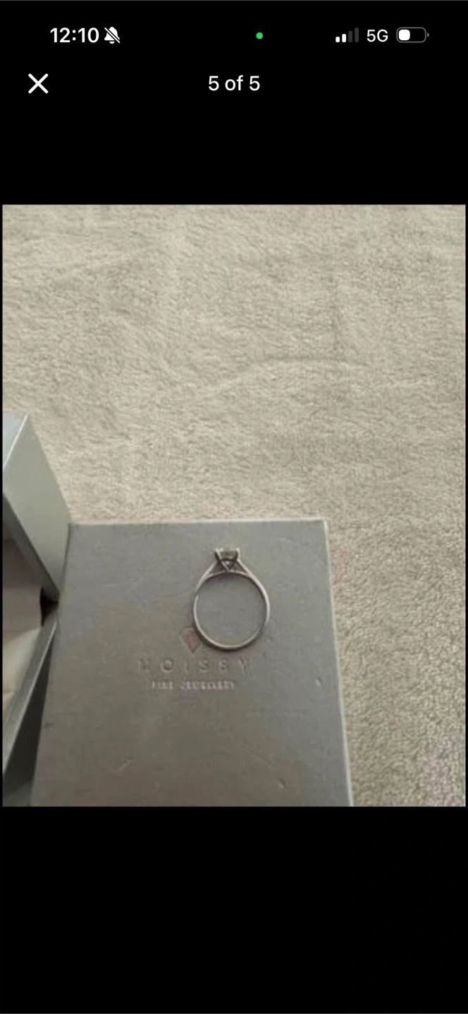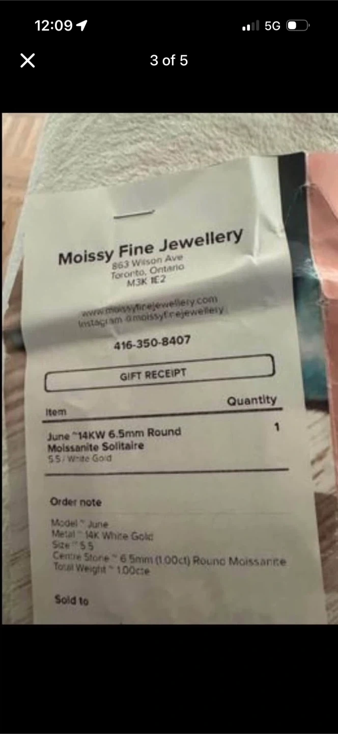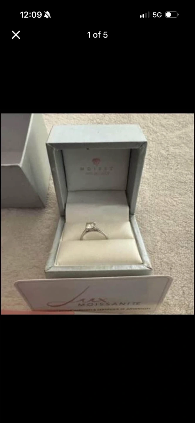 Selling a beautiful Moissy Fine Jewellery ring! 14KW 6.5mm Round Moissanite Solitaire in 5.5/ White Gold. It features a centre stone of 6.5mm cost $ 1000