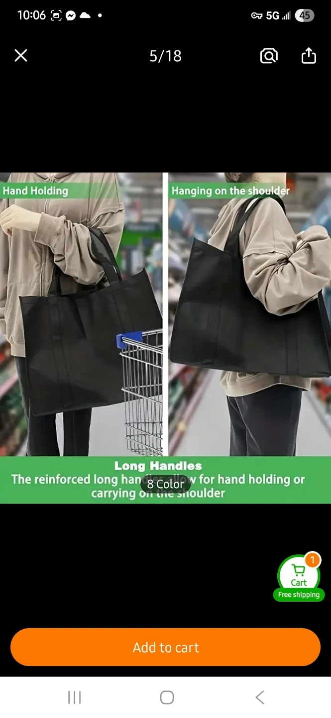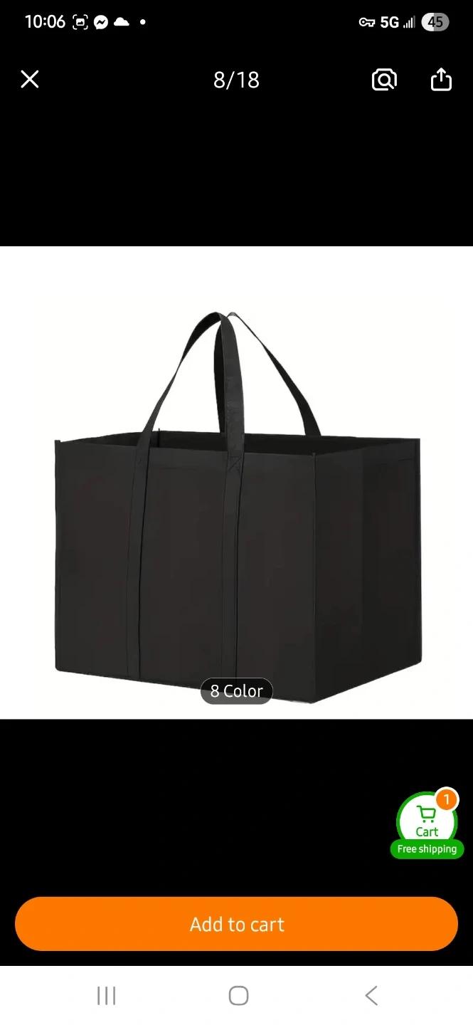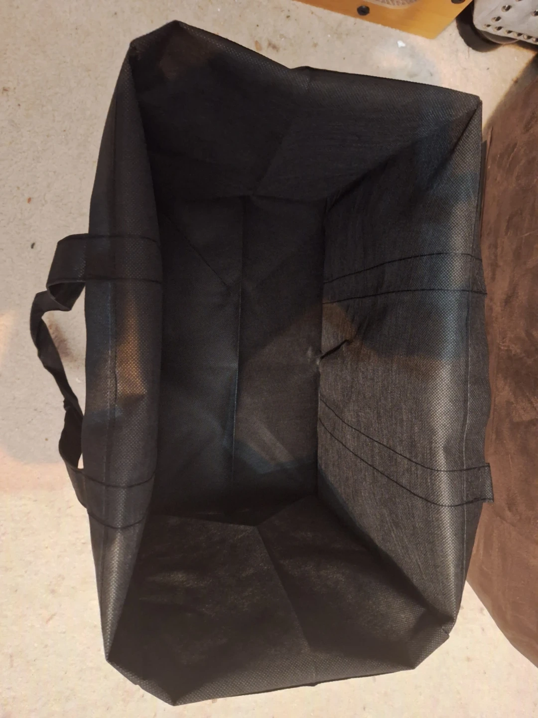 Selling some black reusable grocery bags! They're made of durable fabric with reinforced long handles. Great for hand holding or carrying on your shoulder. Approximate dimensions are 33cm/13in height, 41cm/16.1in width, and 26cm/10.2in depth