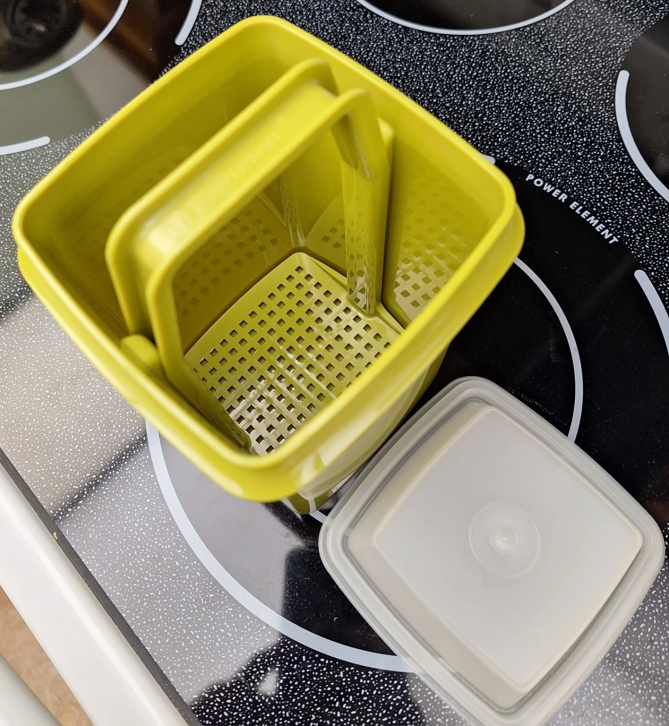 Brand New Tupperware Pickle Container. 3 piece Includes 8.5 cup base, 1 strainer insert and lid. Pickup Scarborough Pharmacy and Ellesmere area
