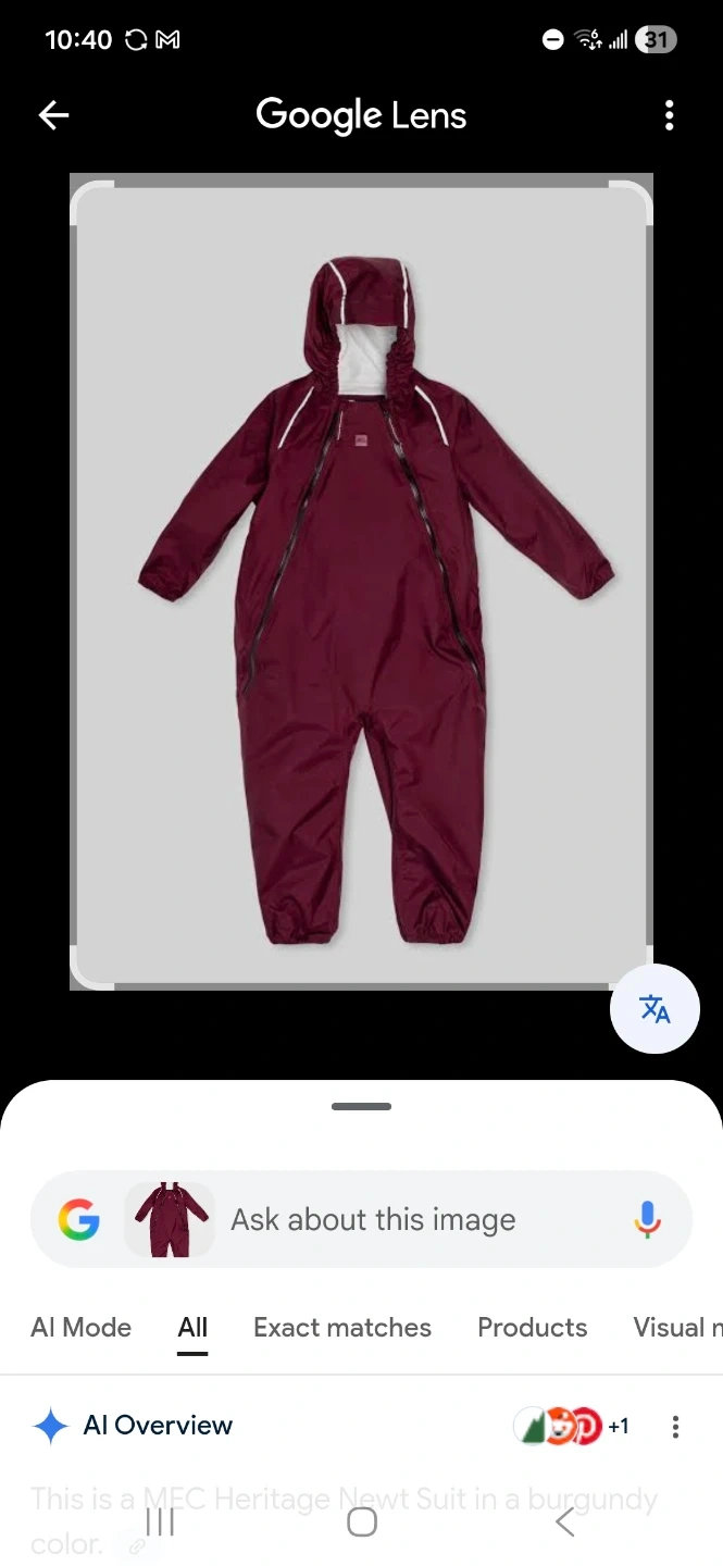 This is a MEC Heritage Newt Suit in a burgundy colour. Size 5 Child