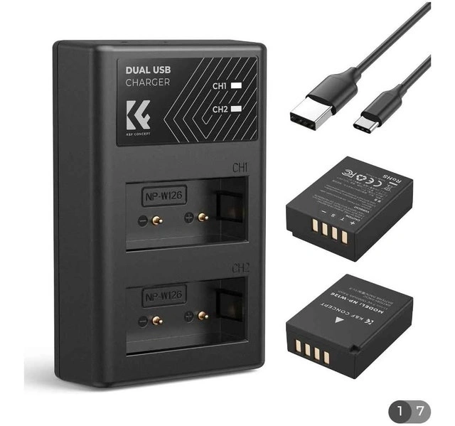 Kf concept dual batteries and charger, new. Compatible with select Fuji cameras like X-T1, XT2 X-T3, XT10, XT20, XT30, X-T100, XT200, X-H1, X-A3, X-A5, X-A7, X-A10, X-E2, E-E2S, X-Pro2, X-Pro3, and X100V